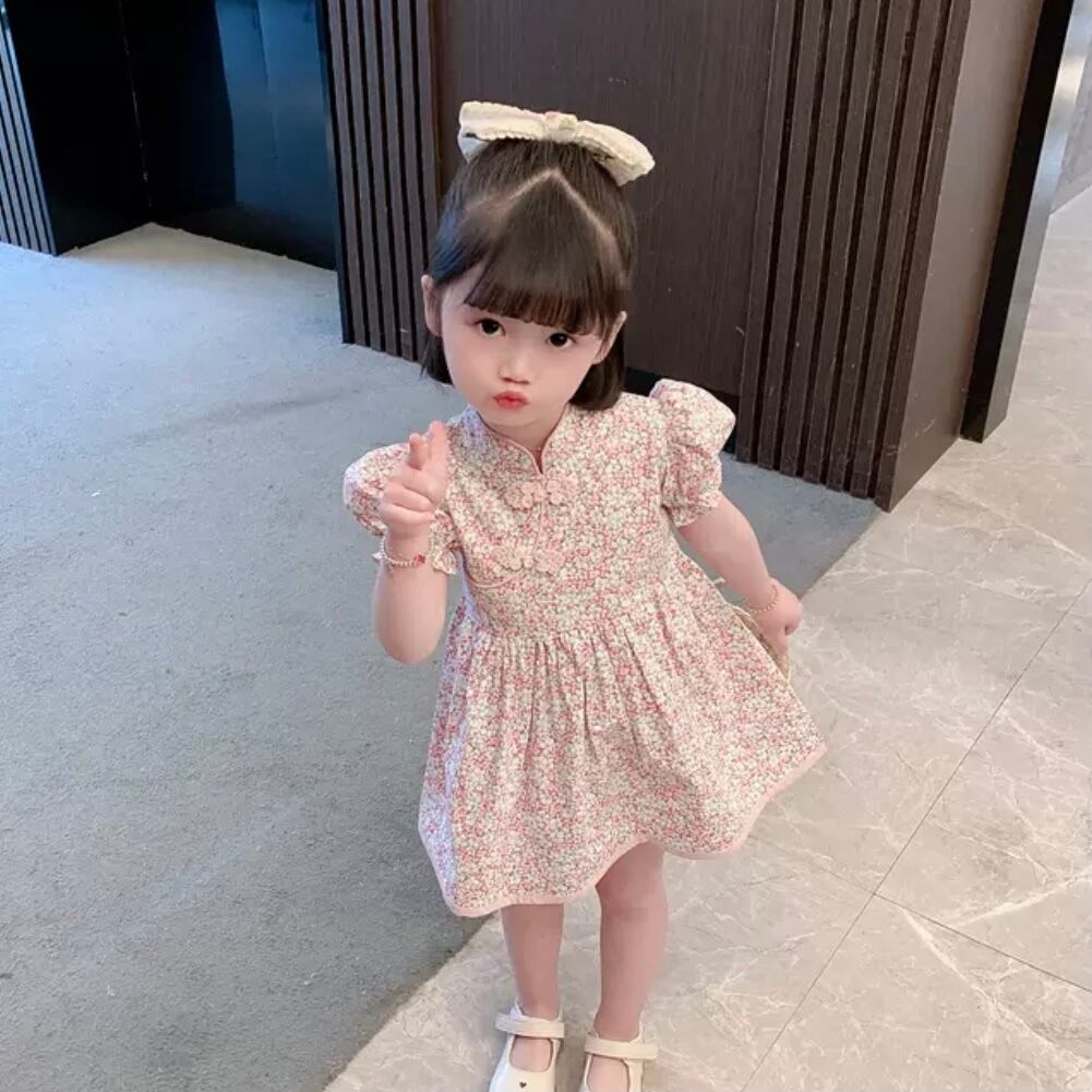 2色 子供服 90〜130 パフスリーブ 半袖 花柄 小花 チャイナドレス ミディ丈 ワンピース 送料無料 ハイウエスト 子供 キッズコーデ キッズファッション キッズドレス キッズ 可愛い きれいめ エレガント 春 夏 ガーリー 韓国系 お出かけ 外出 きれいめカジュアル 着回し ファッション デート コーディネート 重ね着 休日 特別な日 お祝い 記念日 カジュアル 普段着 春コーデ 夏コーデ おしゃれ シンプル ゆったり 韓国ファッション ワンポイント コーデ パーティー パーティドレス ハロウィン