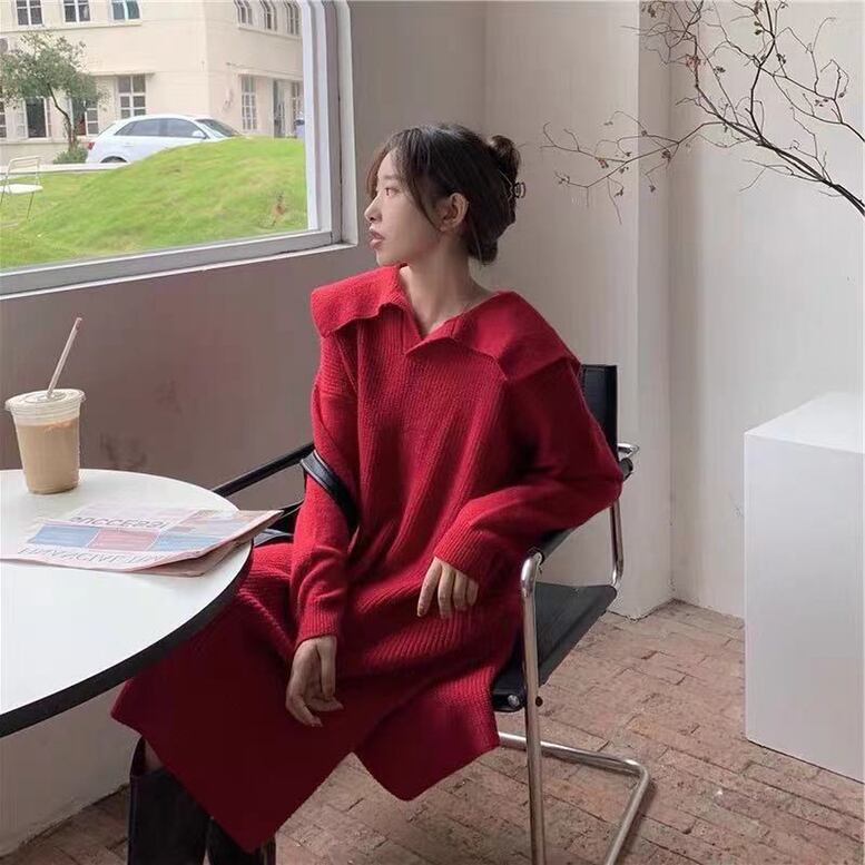 ニットワンピース レディース 送料無料 ビッグカラーニットワンピース ミディアム丈ニットワンピース 襟付きニットワンピース ワンピース ドレス ひざ下 ミディアム丈 長袖 ドロップショルダー Vネック 襟付き エレガント 大人可愛い きれいめ 上品 レトロ キュート ガーリー 体型カバー モテ 春 秋冬 大人 かわいい おしゃれ 普段使い デイリー お呼ばれ お出かけ デート オフィス 通勤 通学 旅行 パーティー 二次会 トレンド