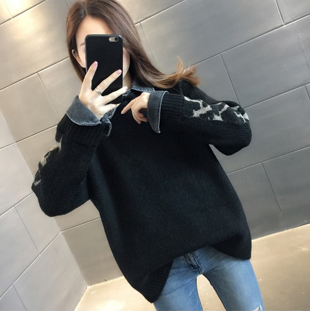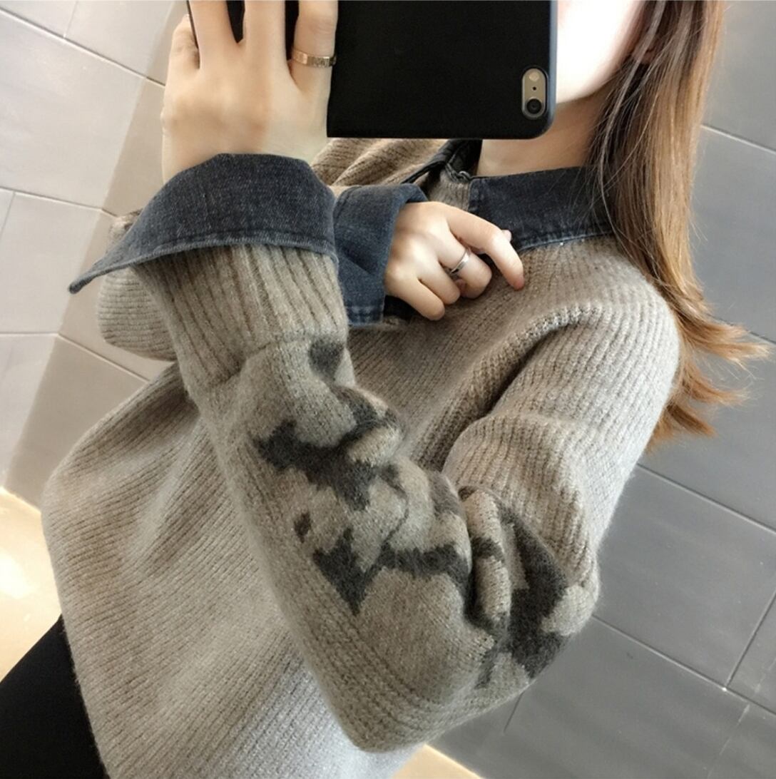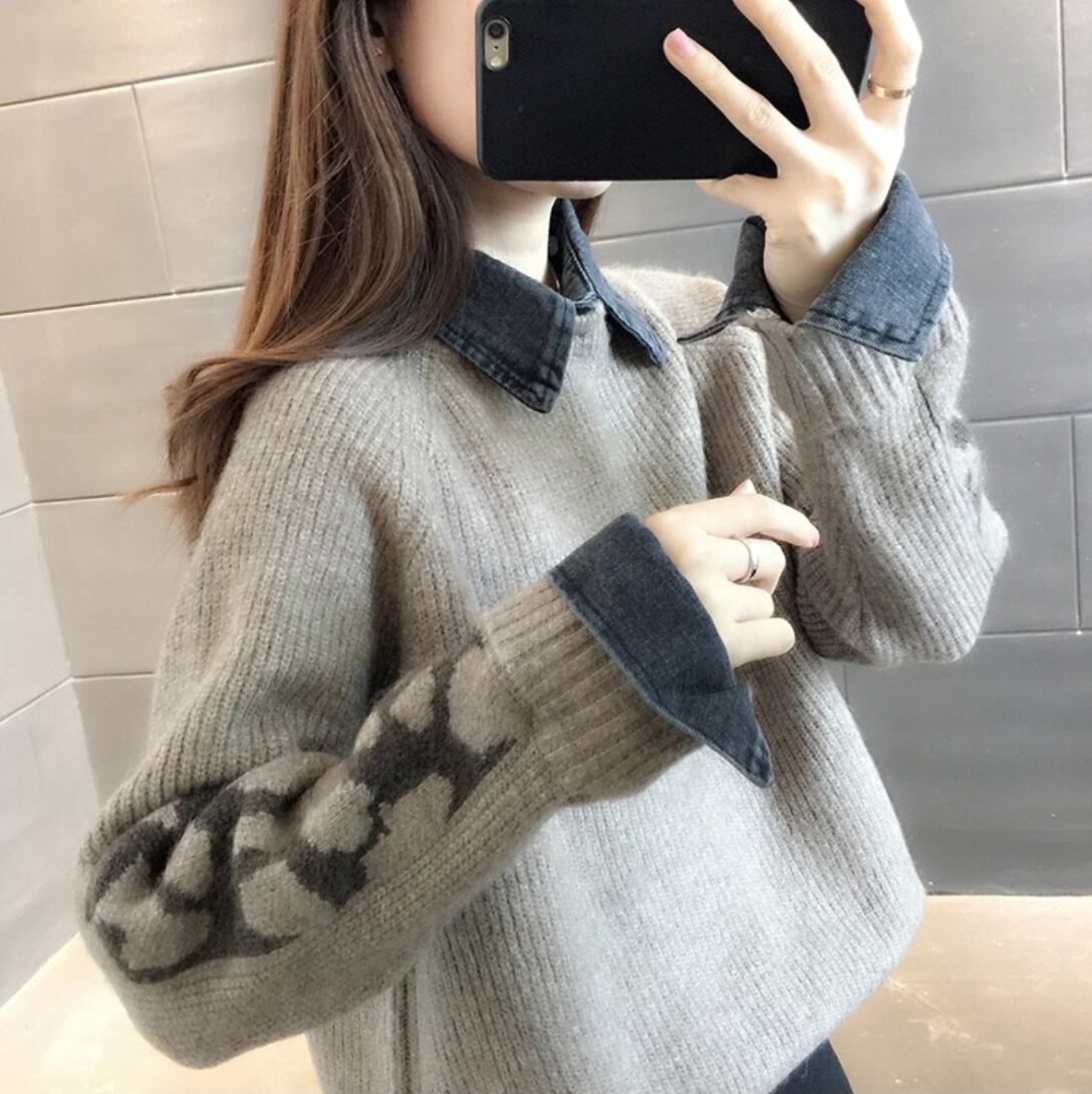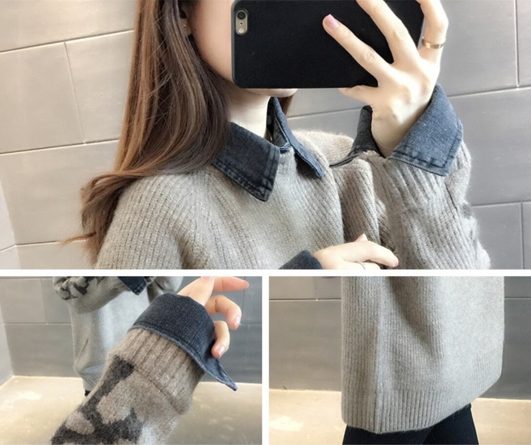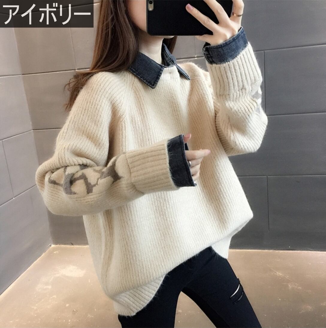 トップス レディース 送料無料 4色展開 セーター ニット 重ね着風 レイヤード 襟付き 長袖 ゆったり ゆる ワイド フリーサイズ 楽ちん 大きめ ビッグシルエット オーバーシルエット あったか 暖か カジュアル ラフ お洒落 おしゃれ こなれ感 メンズライク マニッシュ ボーイッシュ かっこいい カッコイイ グレー アイボリー ブラック ライトグレー 異素材ミックス 異素材MIX 秋服 冬服 10代 20代 30代 おでかけ 普段使い 着回し デート お揃い オルチャン ファッション コーデ 2021