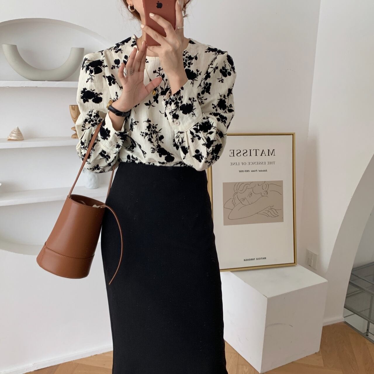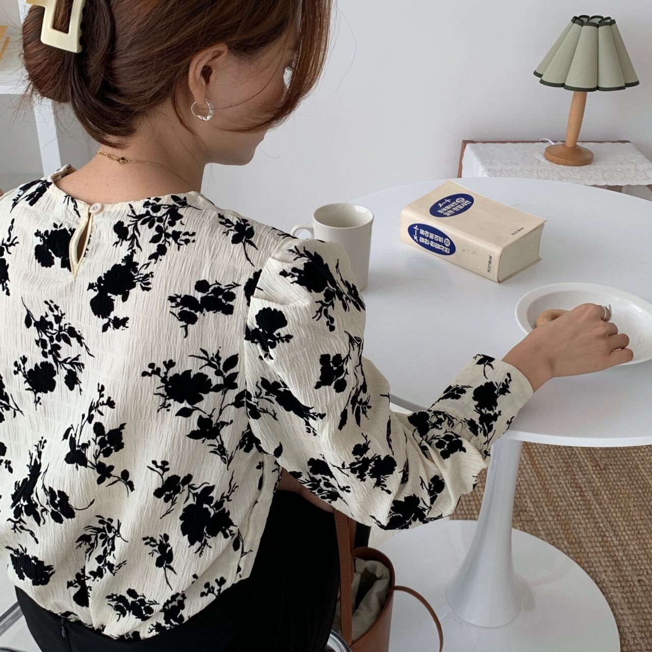 トップス レディース 送料無料 ブラウス シャツ 柄シャツ 丸首 ラウンドネック 長袖 ロングスリーブ パフスリーブ ボリューム袖 プルオーバー ゆったり フリーサイズ ゆる 楽ちん バイカラー フェミニン 大人女子 上品 エレガント かわいい 大人可愛い きれいめ おしゃれ お洒落 こなれ感 キュート ホワイト 白色 花柄 フラワー 春服 夏服 秋服 冬服 オールシーズン シーズンレス 20代 30代 40代 オフィス OL ビジネス 通勤 着回し 普段使い モテ 定番 安い プチプラ 新作 2021