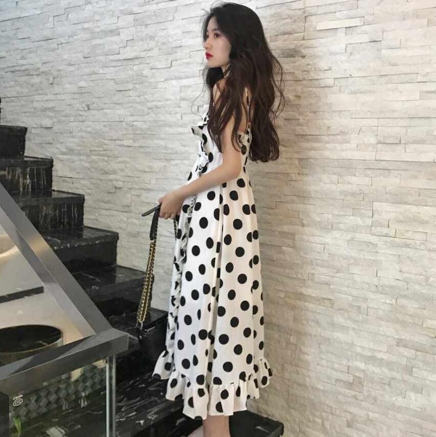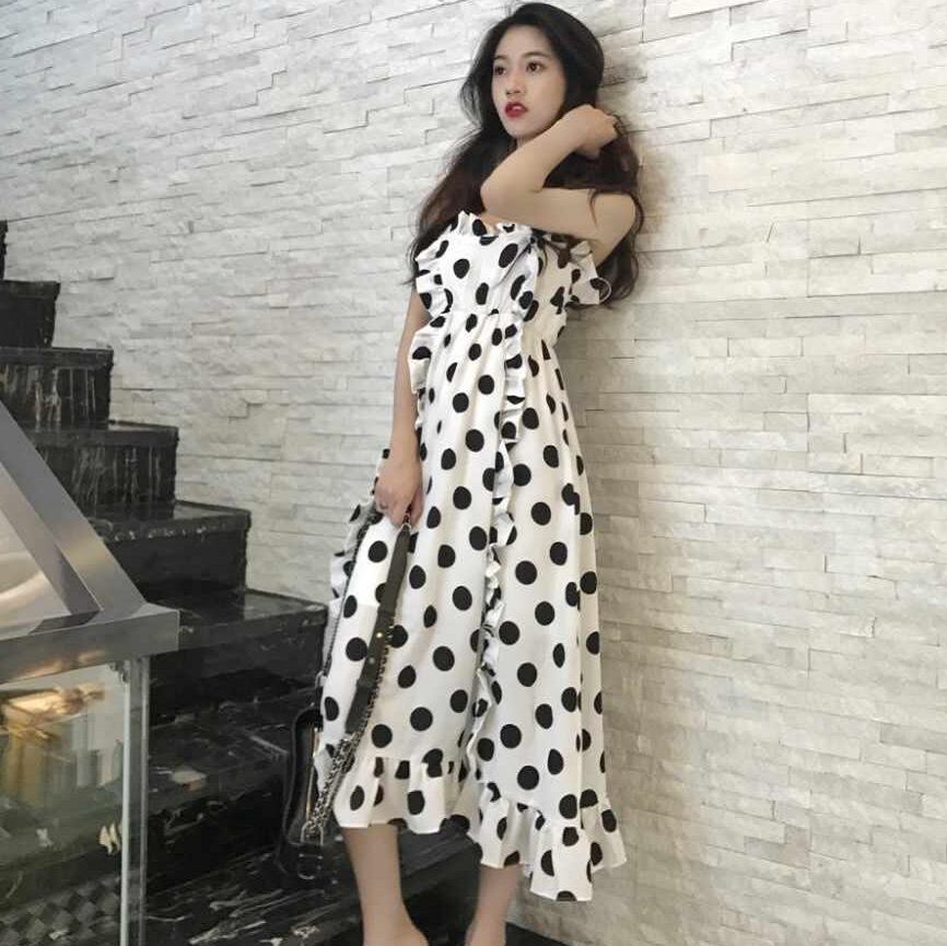 ワンピース レディース 送料無料 フレアワンピース フレア キャミワンピース サンドレス ロングワンピース ロング丈 ミモレワンピース ミモレ丈 デコルテ 肌見せ ハイウエスト ウエストマーク 体型カバー 脚長 細見え スリム Aライン ドット柄 水玉模様 涼し 爽やか 清楚 大人可愛い かわいい ガーリー フェミニン お洒落 おしゃれ こなれ感 抜け感 カジュアル ラフ ラブリー キュート 白色 バイカラー 春服 夏服 秋服 重ね着 普段使い デート おでかけ 10代 20代 30代 新作 2021