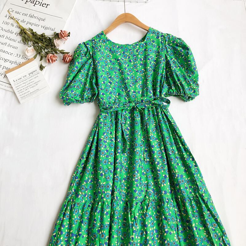ワンピース レディース 送料無料 3色 フラワープリントワンピース フレアワンピース 半袖 ハイウエスト ミモレ丈 スクエアネック 花柄 プリーツ リラックス おしゃれ ロマンチック ガーリー キュート かわいい こなれ感 スタイル 小顔見せ 着痩せ 体形カバー インスタ トレンド きれいめ エレガント ギャザー シャーリング フレア 大人かわいい 上品 ブルー レッド イエロー リゾート 旅行 シフォン ドール お人形 ふんわり パフスリーブ デート お出かけ カジュアルドレス