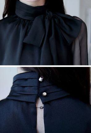 トップス レディース 送料無料 シャツ ブラウス リボンタイ ハイネック スタンドカラー ボウタイ シンプル ヴィンテージ ランタンスリーブ パフスリーブ ロングスリーブ ストレート Iライン 白 ホワイト ライトブルー ブルー 透け感 無地 トレンド かわいい 可愛い カジュアル シンプル きれいめ 上品 エレガント こなれ感 抜け感 ラブリー キュート ガーリー フェミニン 春 春服 夏 夏服 秋 秋服 冬 冬服 デート おでかけ 学生 通学 モテ 着回し 普段使い 重ね着 10代 20代 コーデ