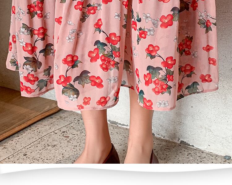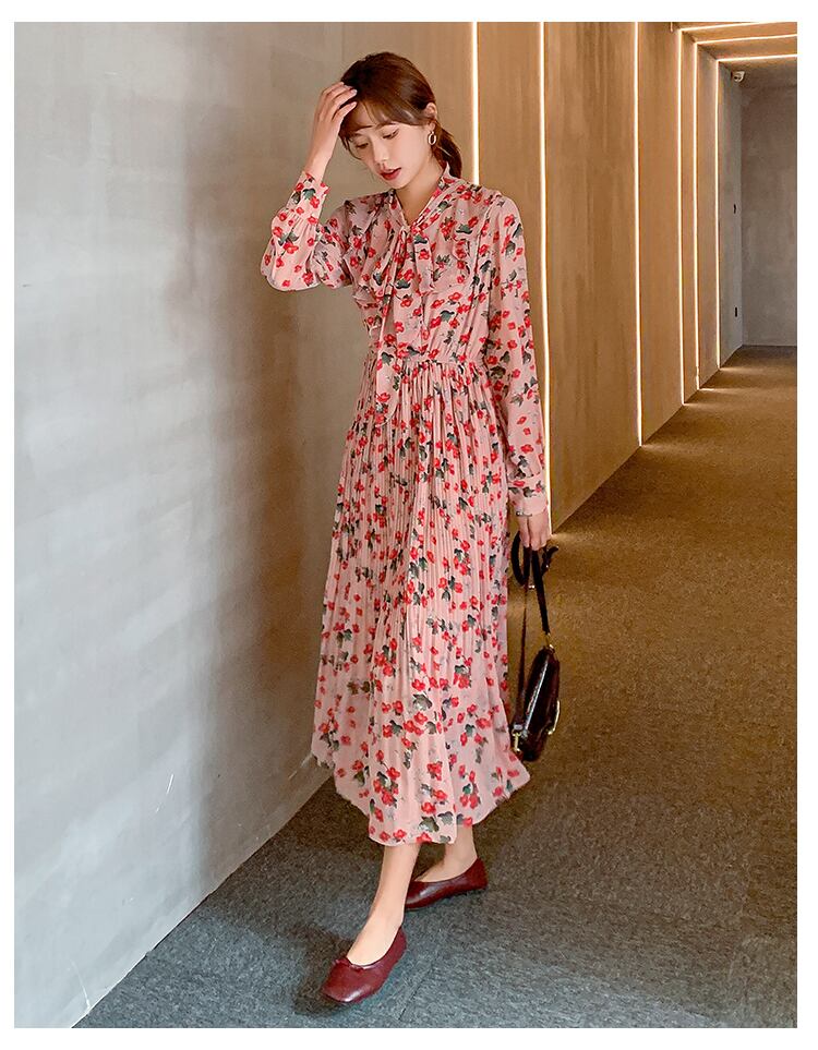 ワンピース レディース 送料無料 フラワープリントワンピース フレアワンピース プリーツワンピース 長袖 ハイウエスト マキシ丈 レトロ 花柄 オリエンタル リラックス おしゃれ ロマンチック ガーリー キュート かわいい こなれ感 スタイル 小顔見せ 着痩せ 体形カバー インスタ トレンド きれいめ エレガント ギャザー シャーリング フレア 大人かわいい 上品 ピンク リゾート 旅行 シフォン ドール お人形 ふんわり デート お出かけ カジュアルドレス