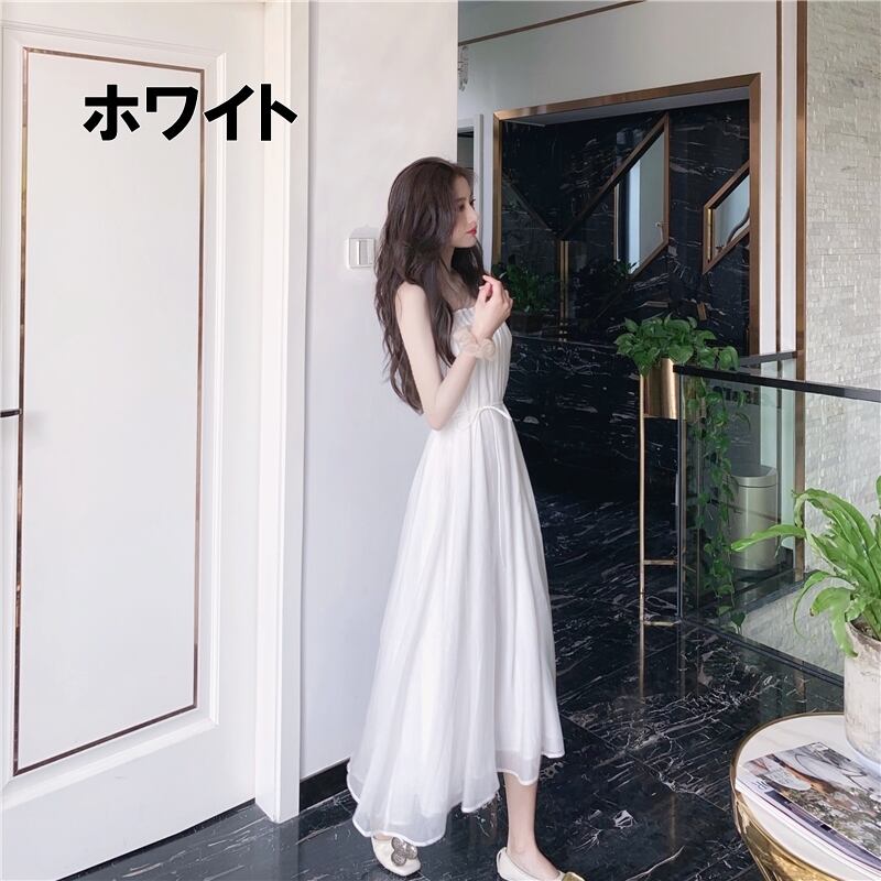 ワンピース レディース 送料無料 2色 フレアワンピース フレア キャミワンピース ロングワンピース ロング丈 ミモレワンピース ミモレ丈 デコルテ 肌見せ ハイウエスト ウエストマーク 体型カバー 脚長 細見え スリム Aライン ドット柄 水玉模様 涼し 爽やか 清楚 大人可愛い かわいい ガーリー フェミニン お洒落 おしゃれ こなれ感 抜け感 カジュアル ラフ ラブリー キュート 白色 バイカラー 春服 夏服 秋服 重ね着 普段使い デート おでかけ 10代 20代 30代 新作 2021