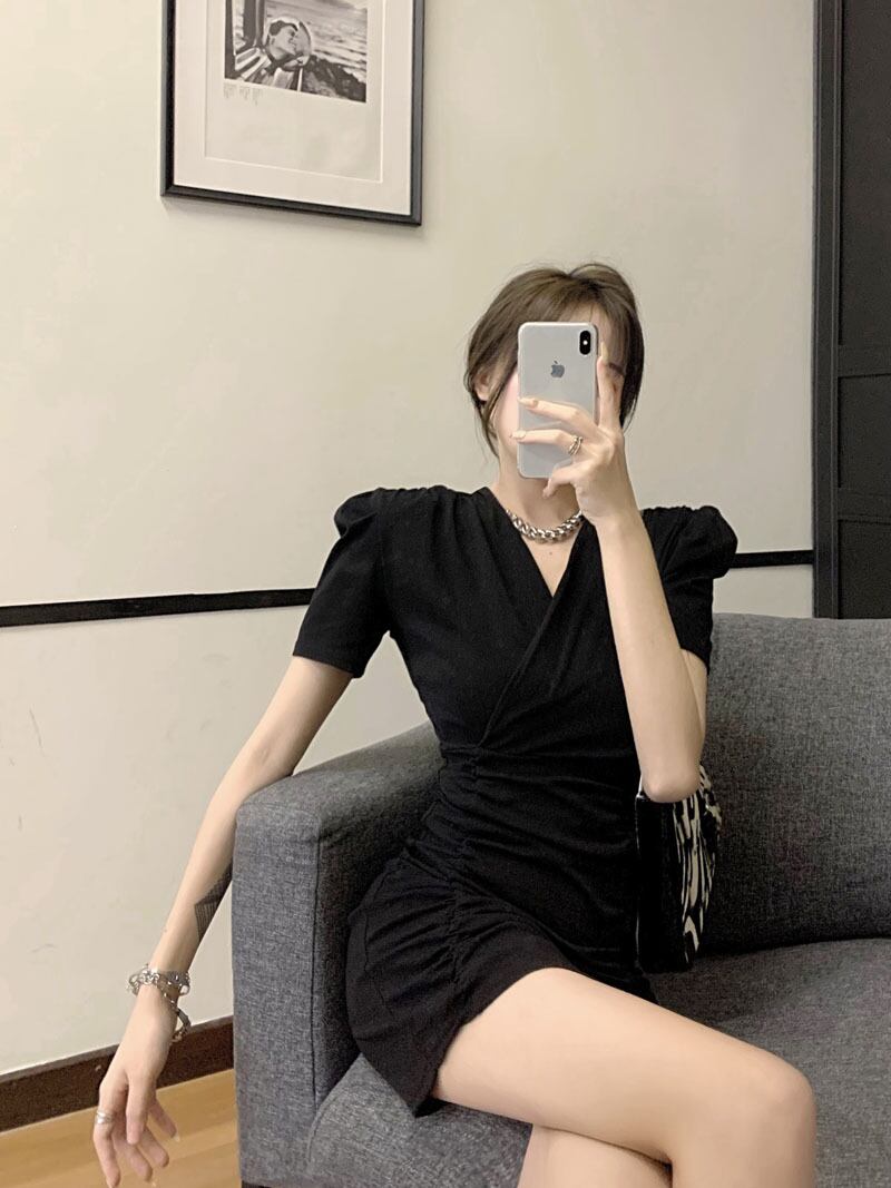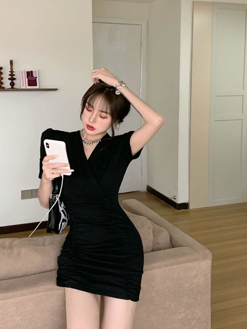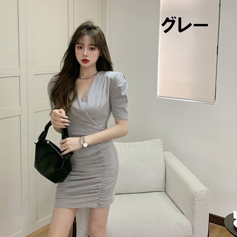 ボリュームのあるショルダーとタイトラインがセクシーなワンピース