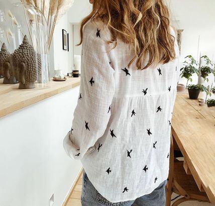 ワイシャツ レディース 送料無料 4色 長袖トップス シャツ ブラウス スリット バード 鳥 アニマルプリント ジャガード コットン オーバーサイズ ラウンドスリーブシャツ 白シャツトップス ロング 長袖 ボリューム袖 ドルマンスリーブ ドロップショルダー Vネック 襟付き オーバーサイズ ビッグシルエット バックスリット バックシャン バックコンシャス 大人可愛い きれいめ 上品 レトロ 大人女子 こなれ感 ラフ 白 ホワイト ストライプ 重ね着 楽ちん 体型カバー 高見え 定番