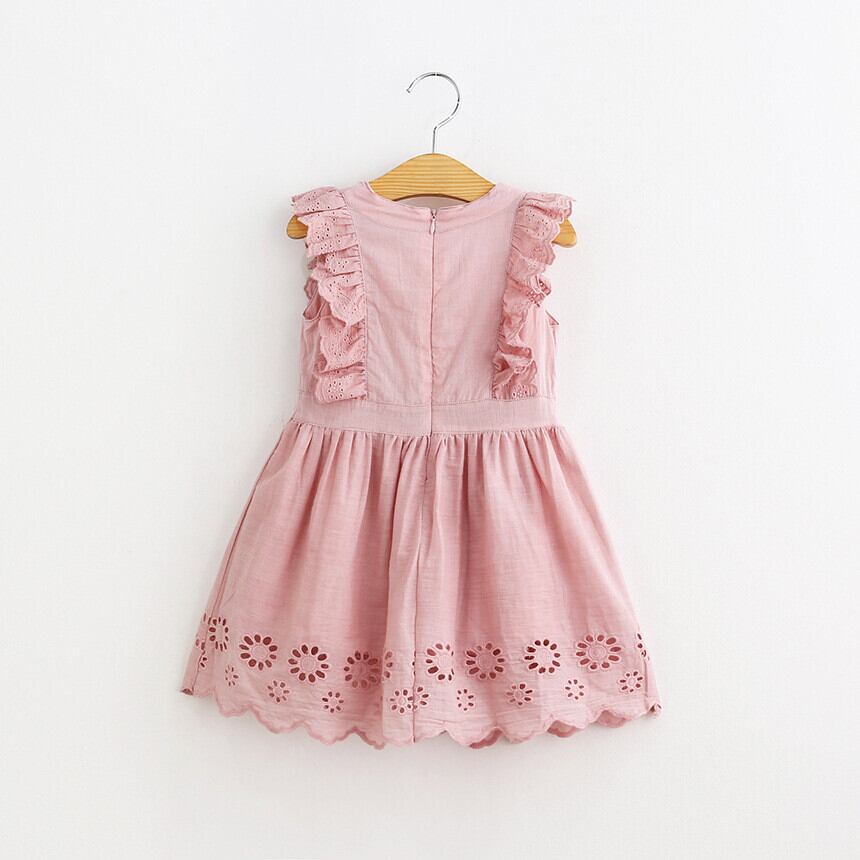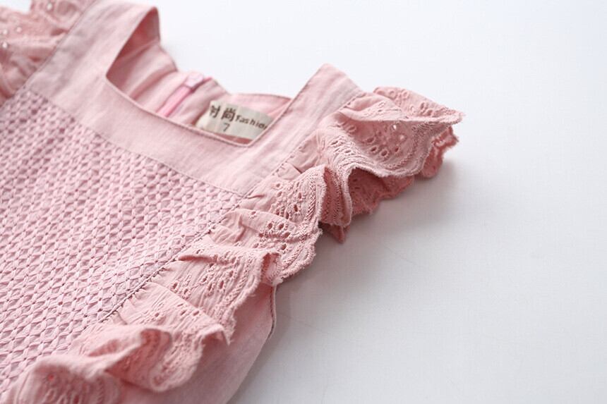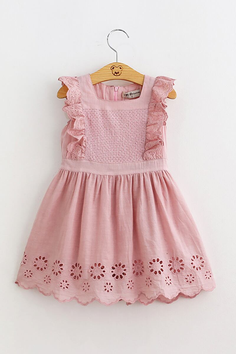 キッズ ワンピース レース ドレス 袖なし ノースリーブ 膝丈 ひざ丈 フレア スクエアネック 刺繍 レース かわいい おしゃれ お洒落 ラブリー キュート ガーリー ピンク くすみカラー 無地 フラワー 春 夏 着回し 普段使い 重ね着 韓国 韓国系 オルチャン お出かけ 休日