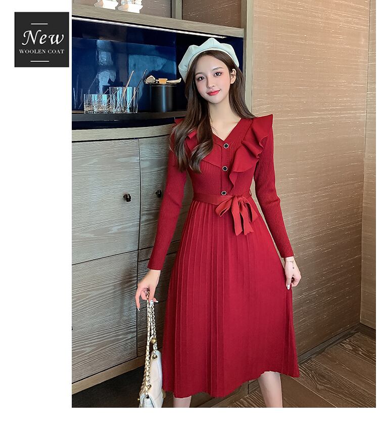 ニットワンピース レディース 送料無料 3色 ビッグカラーニットワンピース ミディアム丈ニットワンピース 襟付き プリーツ フリル Vネック ワンピース ドレス ひざ下 ミディアム丈 長袖 ドロップショルダー Vネック 襟付き エレガント 大人可愛い きれいめ 上品 レトロ キュート ガーリー 体型カバー モテ 春 秋冬 大人 かわいい おしゃれ 普段使い デイリー お呼ばれ お出かけ デート オフィス 通勤 通学 旅行 パーティー 二次会 トレンド