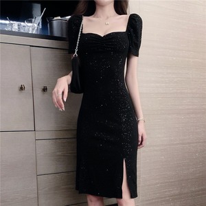 ワンピース レディース 送料無料 タイトワンピース パーティードレス スリットワンピース 半袖 ハイウエスト ひざ丈 かっこいい クール セクシー おしゃれ ロマンチック ガーリー キュート かわいい こなれ感 スタイル 小顔見せ 着痩せ 体形カバー インスタ トレンド きれいめ エレガント 大人かわいい 上品 ブラック 結婚式 お呼ばれ 二次会 パーティー フォーマル イベント ドレス カジュアルドレス キラキラ ラメ グリッター
