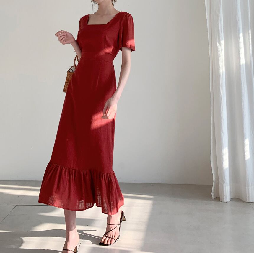 ワンピース レディース 送料無料 フィッシュテール スクエアネック ウエストリボン バックコンシャス ロング丈 マキシ丈 半袖 ロングワンピース ノーカラーエレガント レトロ クラシカルスタイル 小顔見せ 体形カバー インスタ トレンド きれいめ フェミニン 大人かわいい フリル フレアスカート ドレープ とろみ感 透け感 旅行 デート お呼ばれ オフィス 通勤 お出かけ ナチュラル ハイウエスト フラワープリント ギャザー ガーリー キュート ウエストリボン ウエストベルト ハイウエスト