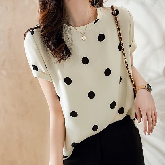 トップス レディース 送料無料 ブラウス シャツ ドット クルーネック 半袖 襟なし シフォン 透け感 ロールアップ スリット レース シアー シースルー ポリエステル ホワイト 白 ピンク アプリコット 単色 透け感 こなれ感 抜け感 ガーリー かわいい 可愛い 涼し 通気性 キュート 上品 エレガント きれいめ ラブリー 女の子 お洒落 おしゃれ 春 春服 夏 夏服 10代 20代 デート おでかけ モテ 女子会 普段使い 着回し 重ね着 定番 2021 韓国 韓国系 オルチャン