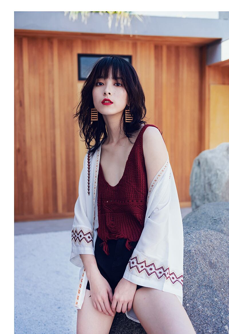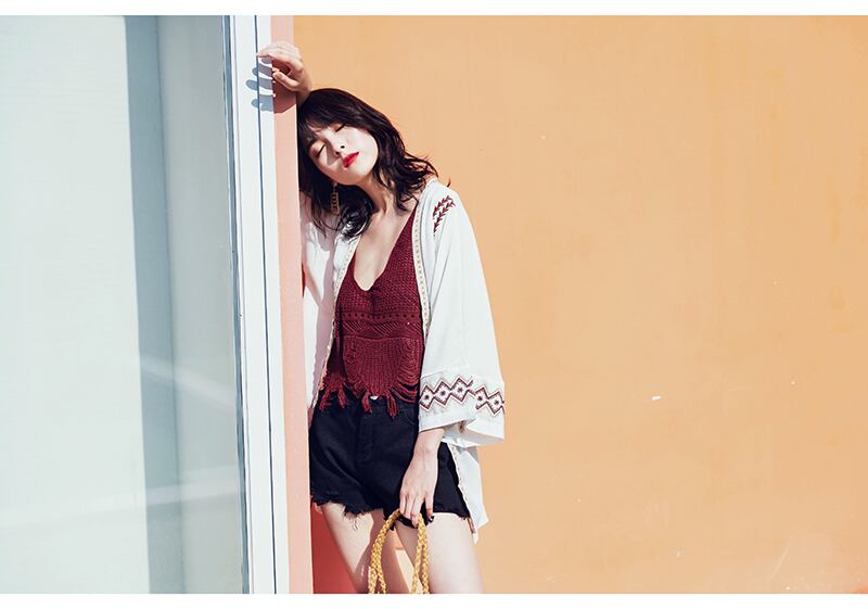 さっと羽織れる便利なボヘミアン柄シアーシャツです。