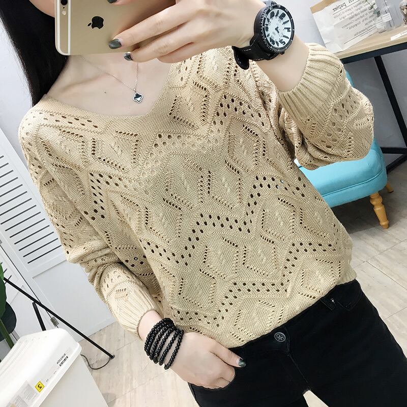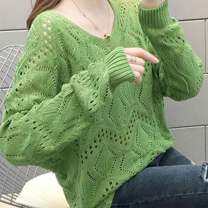 ナチュラルな細見えシルエットが魅力の透かし編みニット。