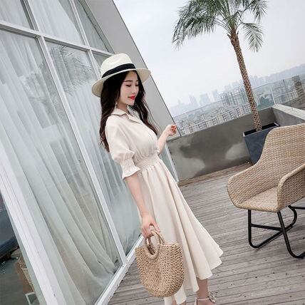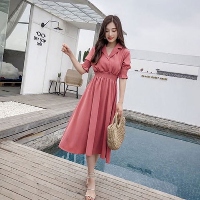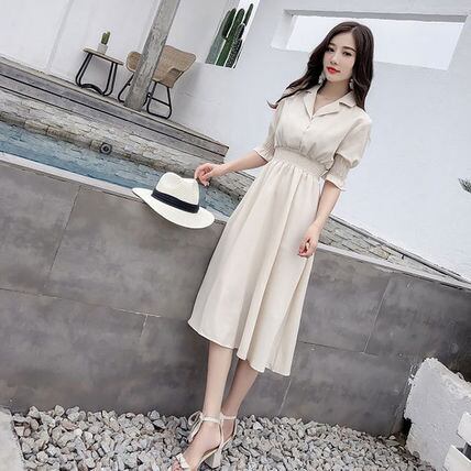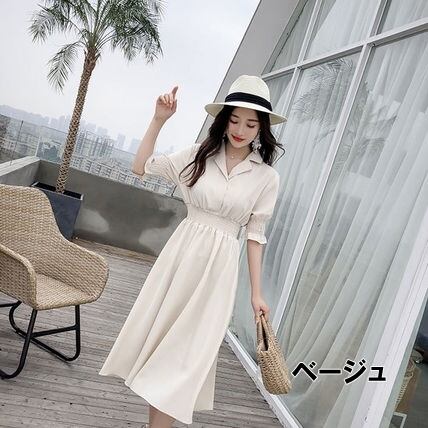 ウエストのシャーリングと開襟シャツで抜け感たっぷりなワンピースです。