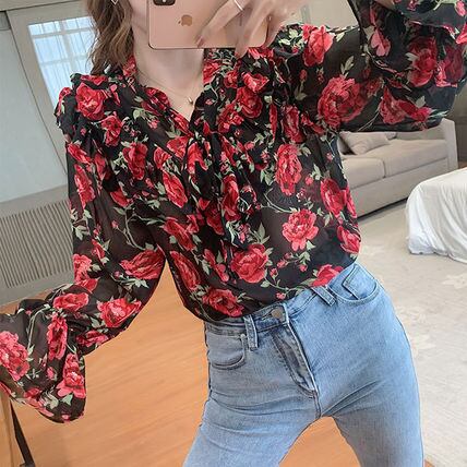 ふわふわのフリルがとびきりフェミニンなブラウス。