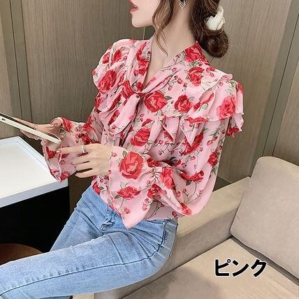 トップス レディース 送料無料 3色 シフォンブラウス フリルブラウス 大花 薔薇 透け感 シアー リボンタイ シースルー 長袖 襟付き フリル フレアスリーブ ドレスブラウス 小顔見せ 着痩せ 体形カバー インスタ トレンド かわいい エレガント フェミニン フリル カスケードフリル オフィス 通勤 OL フォーマル キュート ガーリー 大人かわいい S M L XL ブラウス シフォン 上品 フロントフリル ギャザー シャーリング キャンディスリーブ アイボリー ストライプ フロントボタン
