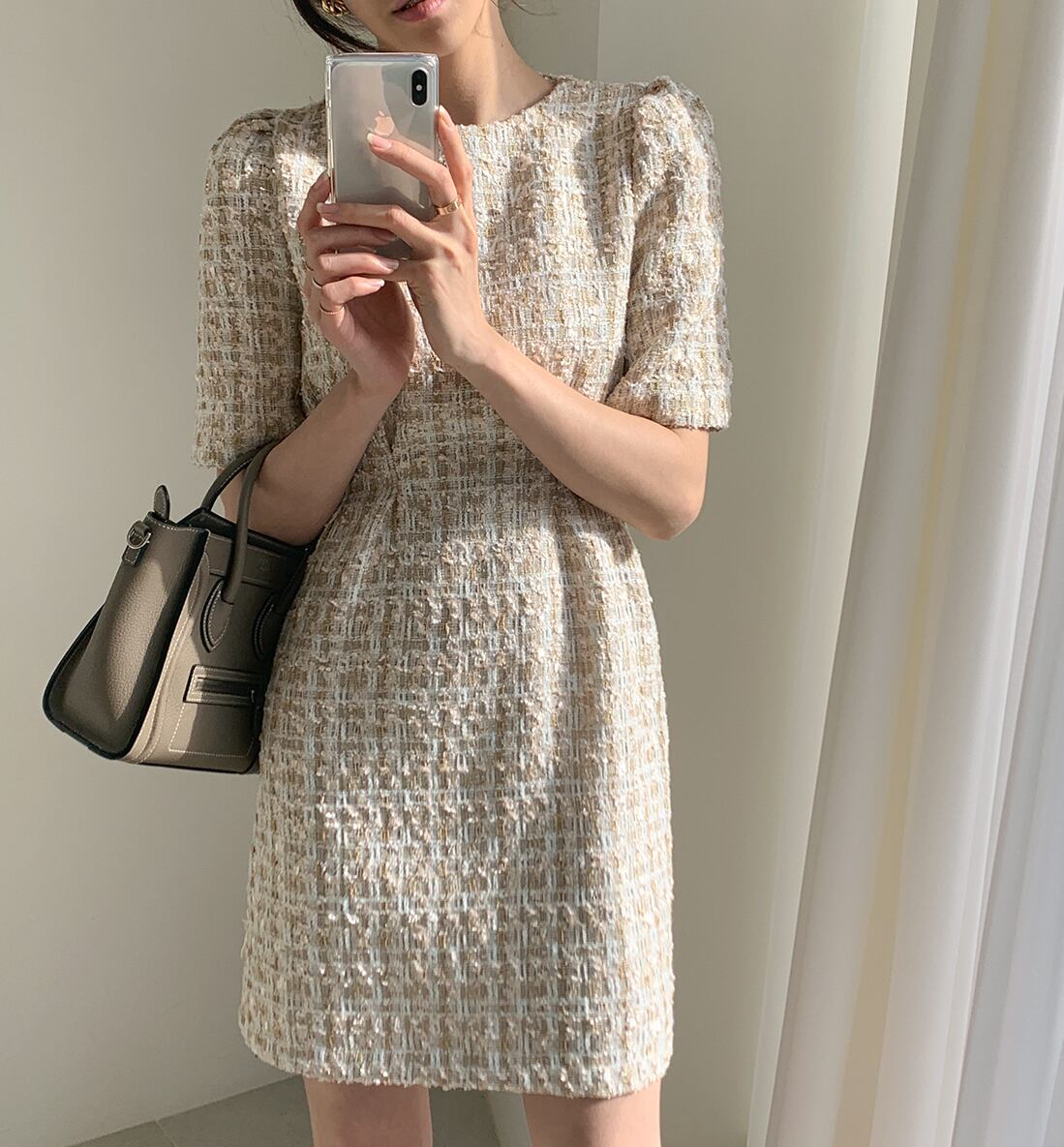 風合いのあるジャガード生地で仕立てたドレスワンピースです。