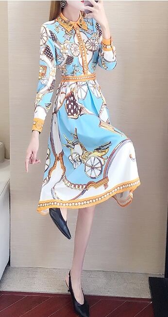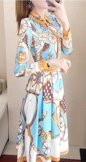 ワンピース レディース 送料無料 クラシカルプリントワンピース Aラインワンピース フレアワンピース 長袖 ハイウエスト ひざ丈 レトロ柄 スカーフ柄 おしゃれ ロマンチック ガーリー キュート フェミニン エレガント かっこいい かわいい こなれ感 スタイル 小顔見せ 着痩せ 体形カバー インスタ トレンド きれいめ エレガント フレア マルチカラー 大人かわいい 上品 結婚式 お呼ばれ 二次会 パーティー フォーマル イベント ドレス カジュアルドレス