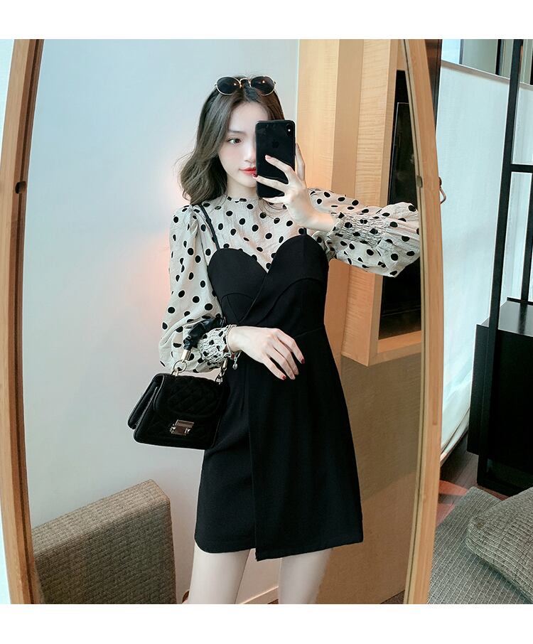 ドットブラウスとキャミワンピースのセット商品。