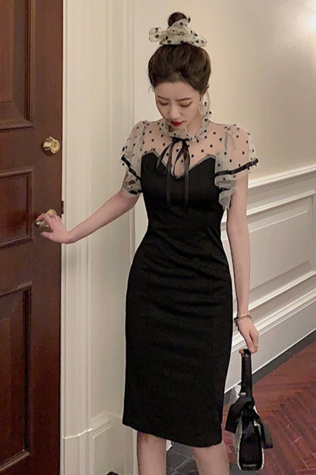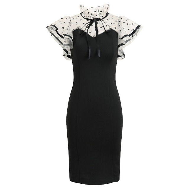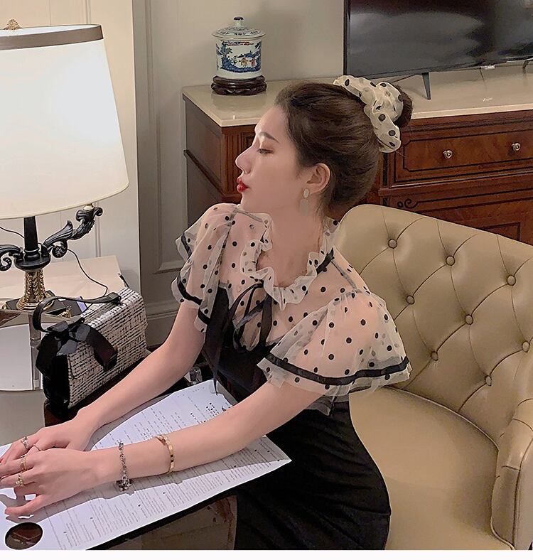 ワンピース レディース 送料無料 ドットチュールワンピース ビスチェ風 タイトワンピース 半袖 ハイウエスト ひざ丈 フレアスリーブ 水玉 ドット リボン おしゃれ ロマンチック ガーリー キュート かわいい こなれ感 スタイル 小顔見せ 着痩せ 体形カバー インスタ トレンド きれいめ エレガント ギャザー シャーリング フレア レース シースルー 透け感 大人かわいい 上品 ブラック 結婚式 お呼ばれ 二次会 パーティー フォーマル イベント ドレス カジュアルドレス