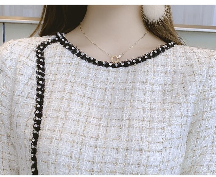 ツイードがエレガントな高級感漂うミディ丈ワンピース。