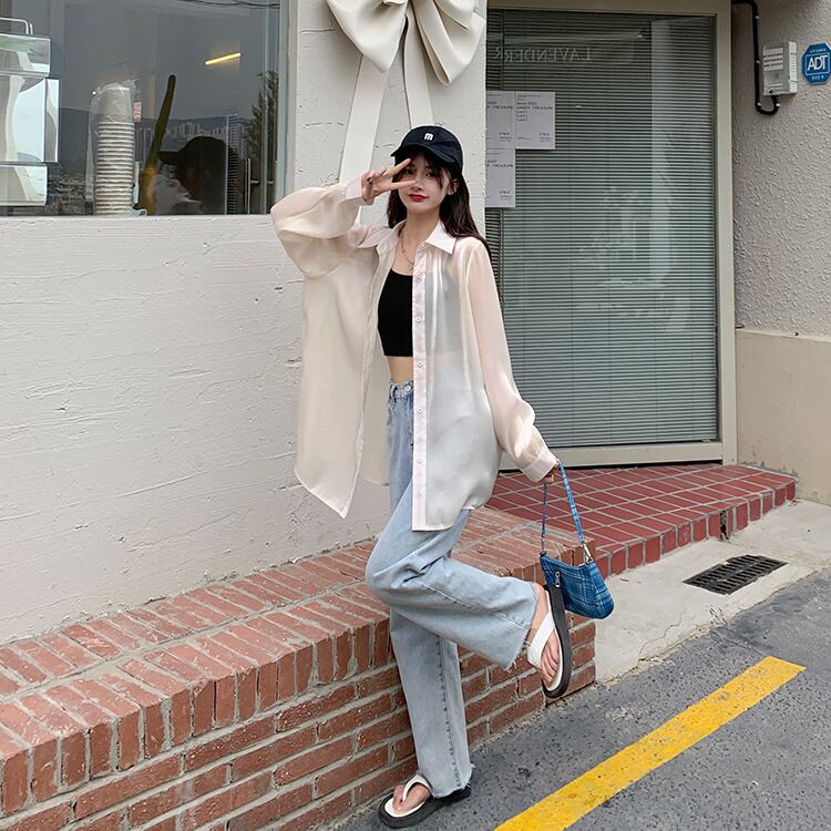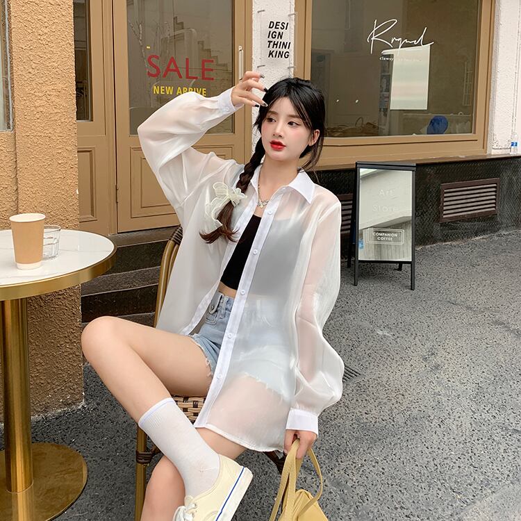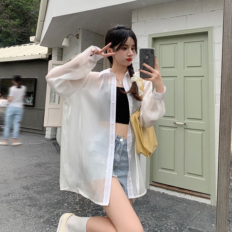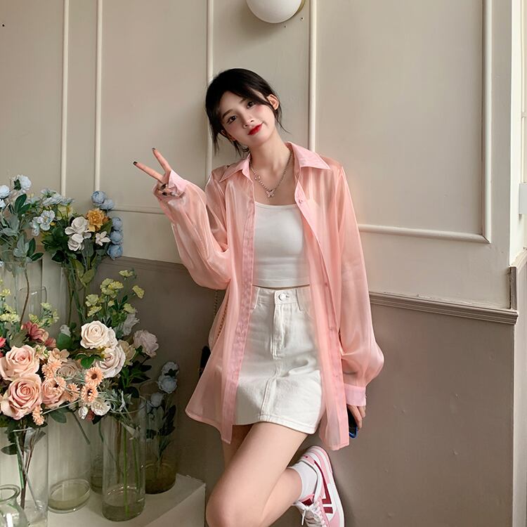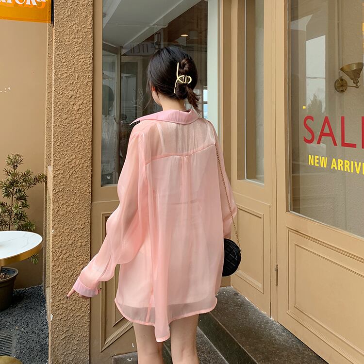 トップス レディース 送料無料 シースルー長袖シャツ カラバリ 4色 ホワイト シャンパン ピンク グリーン フリーサイズ ワンサイズ ゆったり 楽ちん 海 おしゃれ きれいめ 通勤 日よけ プール パーティ ランチ 女子会 お泊り 10代 20代 30代 40代 春 夏 秋 冬 オールシーズン 重ね着 着回し 大人 こなれ感 シースルーシャツ 長袖シャツ Vネックシャツ ルーズシャツ シースルー おしゃれシャツ ラブリー キュート シック 韓国 韓国ファッション オルチャン
