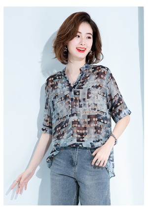 トップス レディース 送料無料 シャツ半袖 開襟シャツ 幾何学模様 マニッシュ ビーズ装飾 ビジュー カシュクール 襟付き スタンドカラー オーバーサイズ ビッグシルエットゆったり ゆる 抜け感 こなれ感 シック クール 個性的 華やか 派手 無地 春 春服 春物 秋 秋服 秋物 普段使い 重ね着 着回し おしゃれ お洒落 ラフ カジュアル 前開き シルバー 銀 ブラック 黒 グレー 灰色 涼し 通気性 薄手 ポリエステル シフォン シフォンシャツ ワイド 存在感 モード系 エキゾチック デート