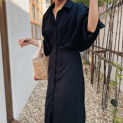シックな落ち着いた色合いが大人っぽいシャツワンピースです。