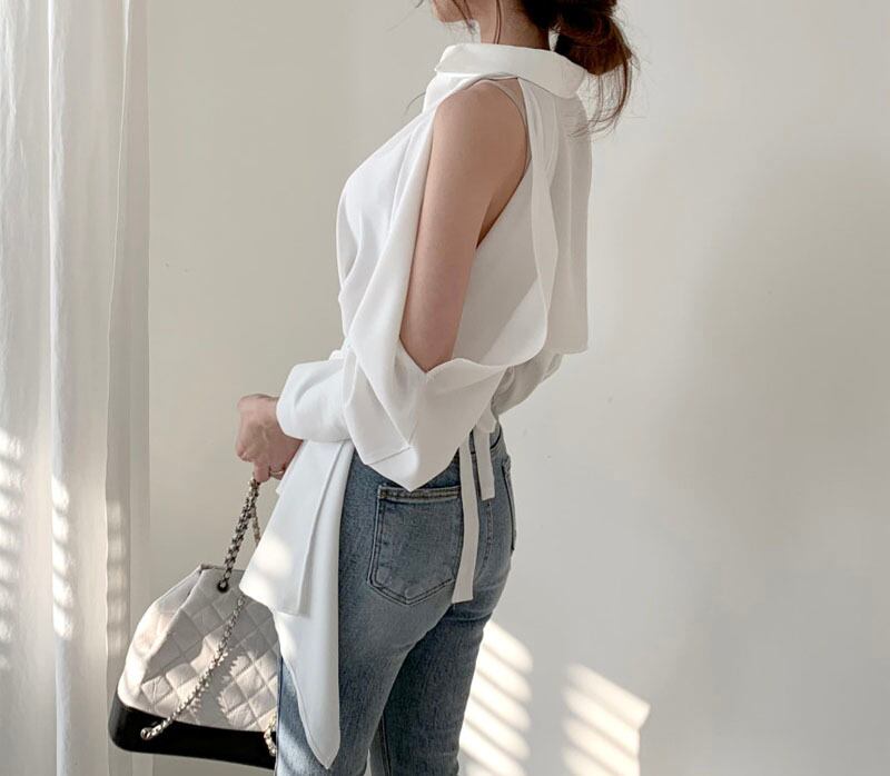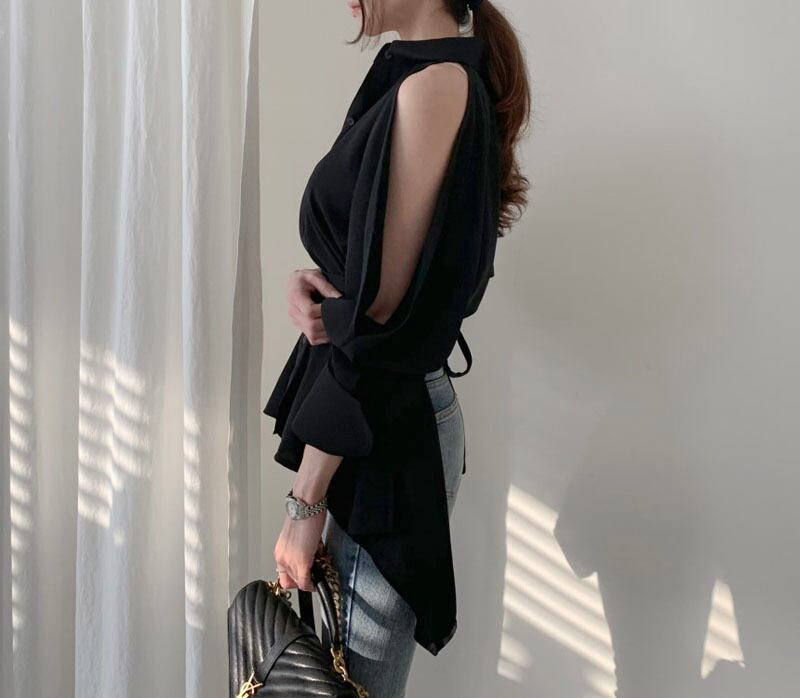 トップス レディース 送料無料 3色 ブラウス シャツ オープンショルダー フリル バックコンシャス 長袖 襟付き シフォン レース シアー シースルー ロングカフス ポリエステル ホワイト 白 ピンク アプリコット 単色 透け感 こなれ感 抜け感 ガーリー かわいい 可愛い 涼し 通気性 キュート 上品 エレガント きれいめ ラブリー 女の子 お洒落 おしゃれ 春 春服 夏 夏服 10代 20代 デート おでかけ モテ 女子会 普段使い 着回し 重ね着 定番 2021 韓国 韓国系 オルチャン