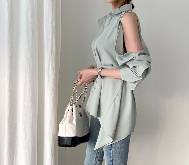 大胆なカットで肩とヒップの上をセクシーに露出したデザインです。