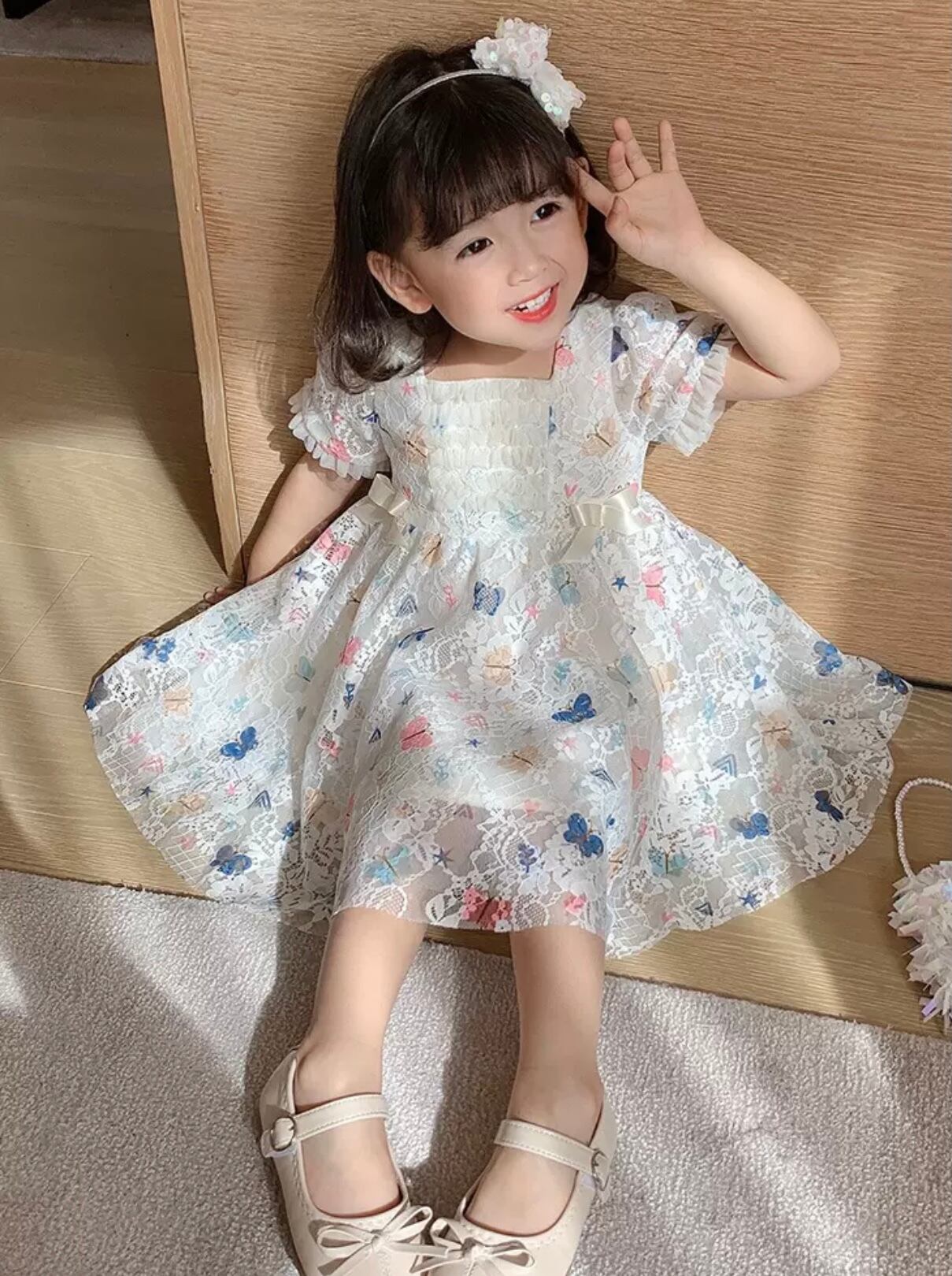 子供服 90〜140 半袖 パフスリーブ フリル 蝶 フレアワンピース ドレス チュール 送料無料 カラフル マルチカラー 子供 キッズコーデ キッズファッション キッズドレス キッズ 可愛い きれいめ エレガント 春 夏 ガーリー 韓国系 お出かけ 外出 きれいめカジュアル 着回し ファッション デート コーディネート 重ね着 休日 特別な日 お祝い 記念日 カジュアル 普段着 春コーデ 夏コーデ 韓国 おしゃれ シンプル ゆったり 韓国ファッション ワンポイント コーデ パーティー パーティドレス
