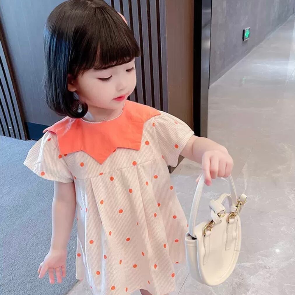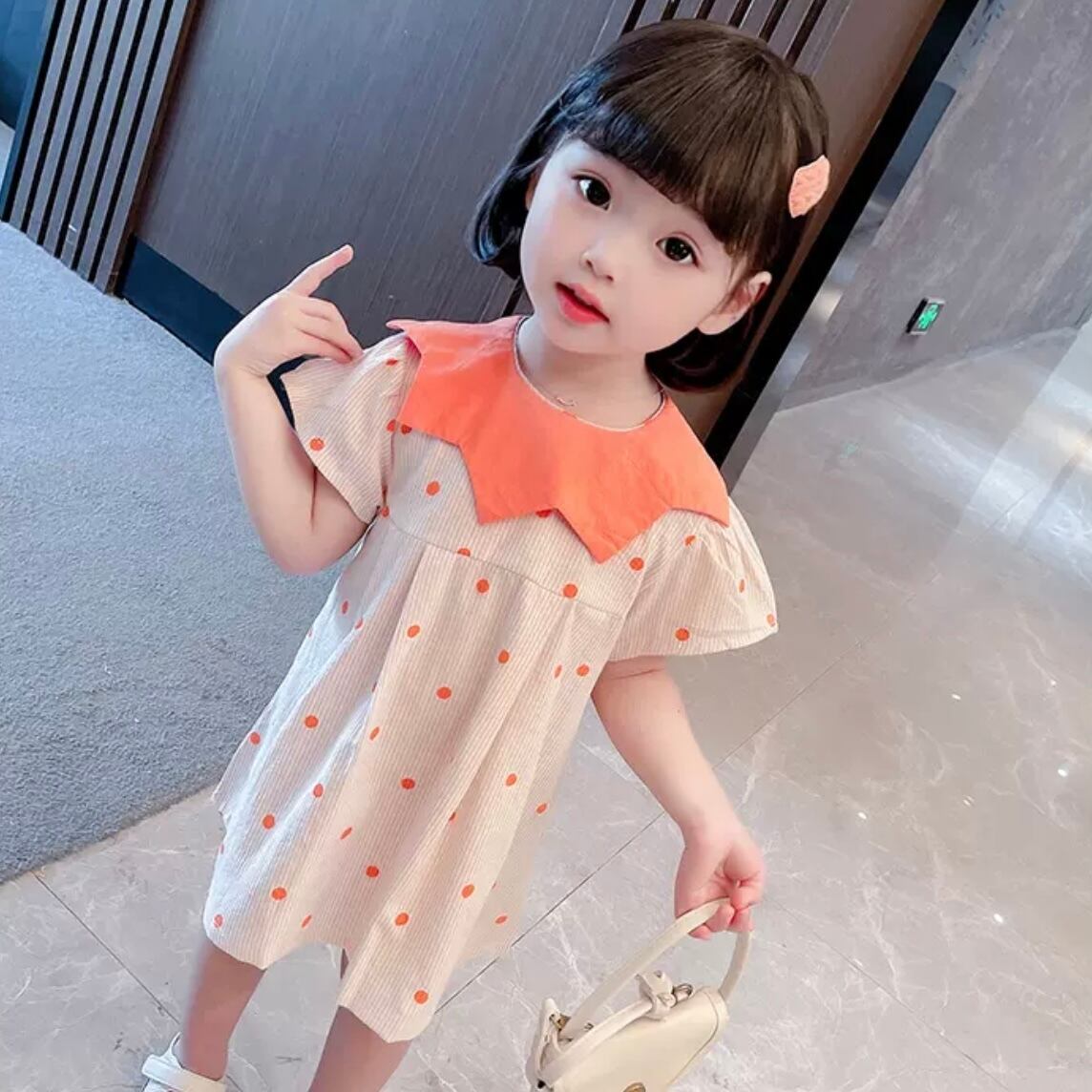 2色 子供服 80〜130 ドット フレアワンピース 丸襟 ギザギザ襟 半袖 ミディ丈 ドレス 送料無料 水玉 ハイウエスト 子供 キッズコーデ キッズファッション キッズドレス キッズ 可愛い きれいめ エレガント 春 夏 ガーリー お出かけ 外出 きれいめカジュアル 着回し ファッション デート コーディネート 重ね着 休日 特別な日 お祝い 記念日 カジュアル 普段着 春コーデ 夏コーデ 韓国 おしゃれ シンプル ゆったり 韓国ファッション ワンポイント コーデ パーティー パーティドレス 誕生日