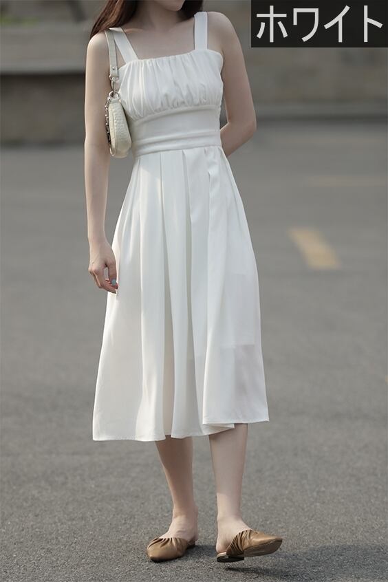 ワンピース レディース 送料無料 2色展開 フレアワンピース フレア ロング丈 ロングワンピース ミモレ丈 ミモレワンピース ホワイト ブルー スクエアネック ノースリーブ ハイウエスト ウエストマーク 体型カバー 脚長 細見え スタイルアップ 着痩せ ギャザー 爽やか 清楚 涼し カジュアル ガーリー 抜け感 きれいめ シンプル 上品 大人女子 おしゃれ お洒落 こなれ感 キュート モダン ラフ 無地 単色 春服 夏服 デート おでかけ 特別な日 休日 リゾート 普段使い 重ね着 10代 20代 新作