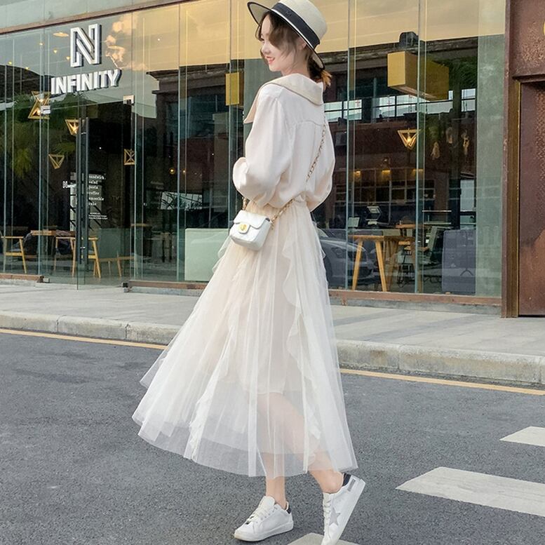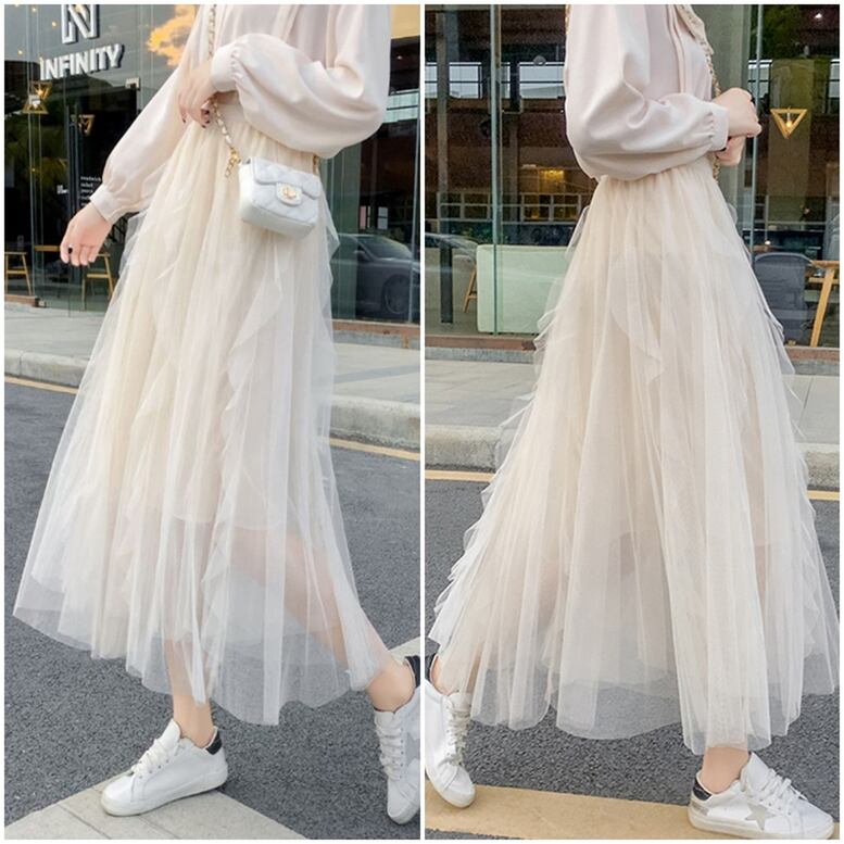 歩くとふんわり広がるシルエットに膝下の透け感が可愛らしい1枚