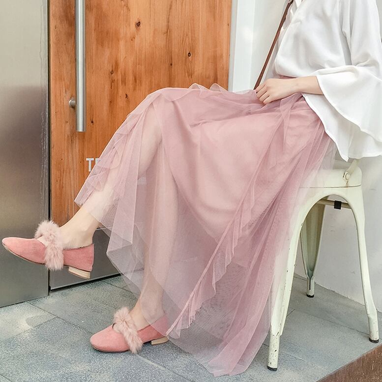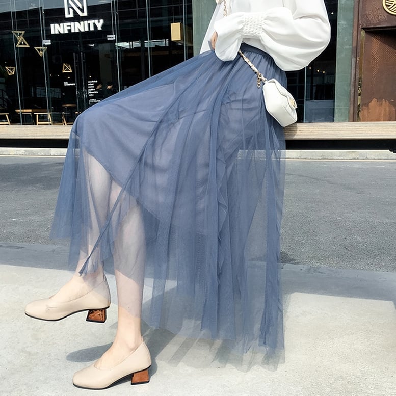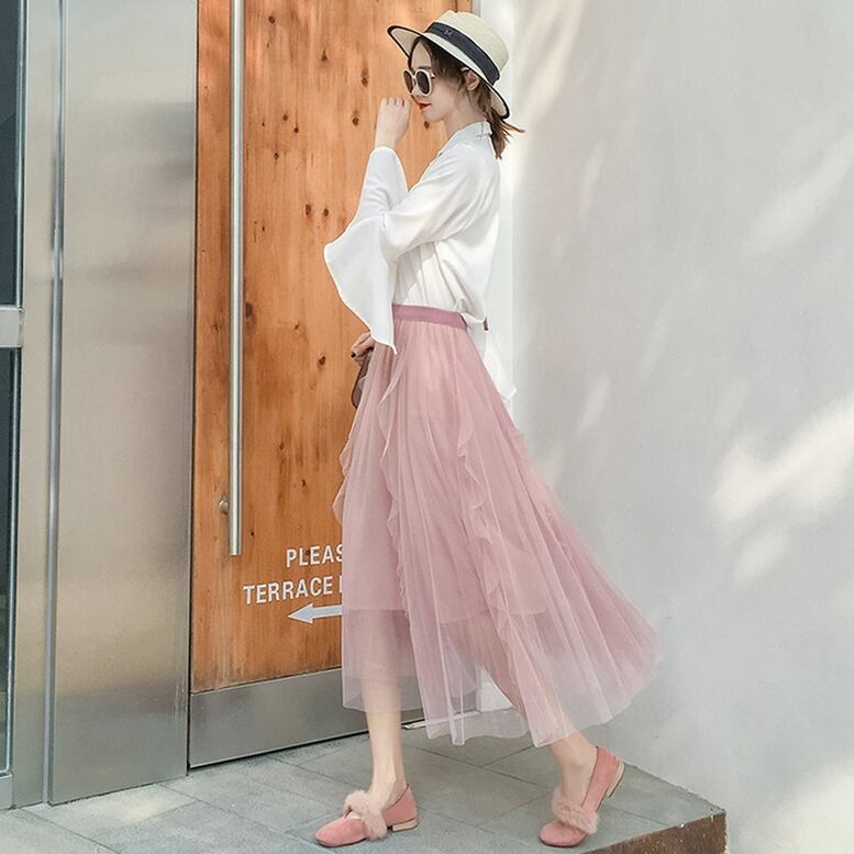 フリルが施された表情豊かなシアーチュールスカート