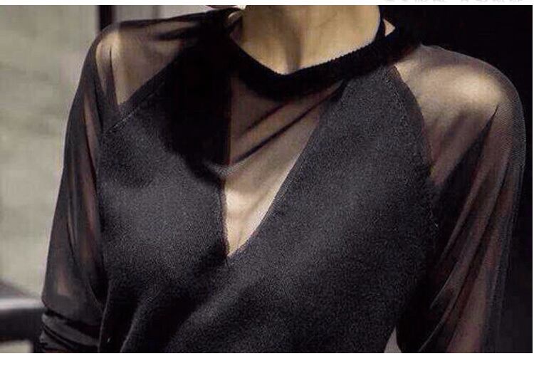 シアーニットので透け感がセクシーなクラシカルブラウスです。