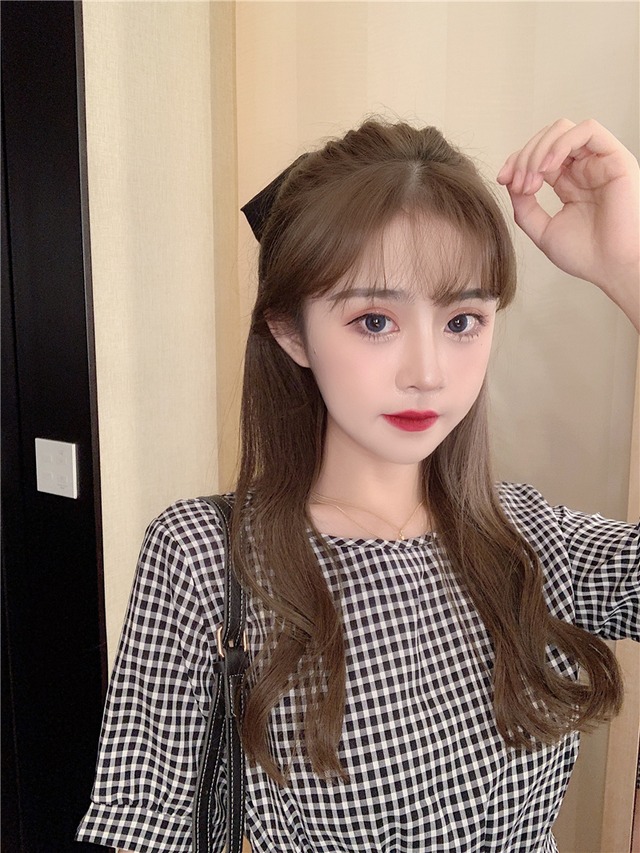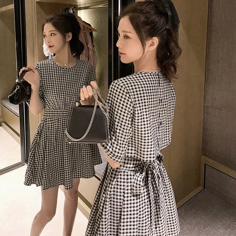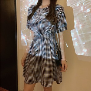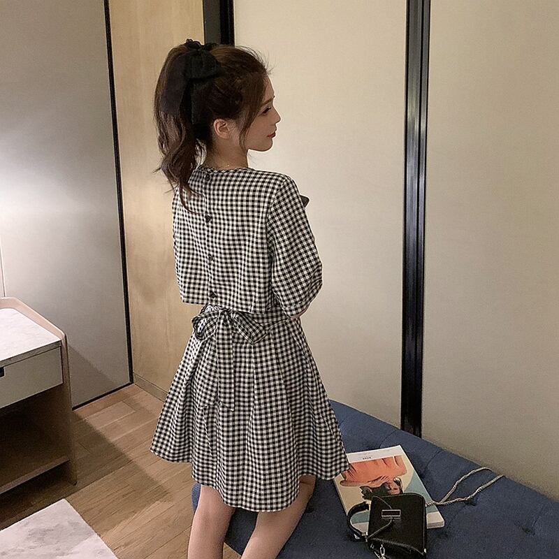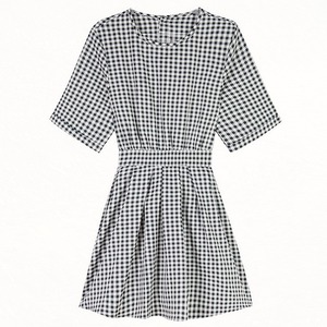ギンガムチェックとフレアスカートがフェミニンな一着です。