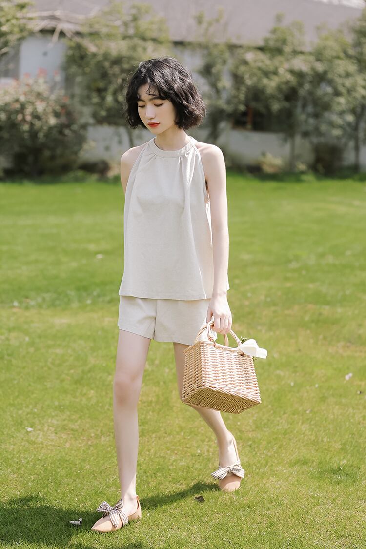 セットアップ レディース 送料無料 トップス ノースリーブ ブラウス 半袖 ホルターネック ショートパンツ ポケット付き ホットパンツ ゆる オーバーシルエット ビッグシルエット オーバーサイズ ショートパンツ ワイドパンツ ポケット付き サイドポケット 2点セット ツーピース 大人可愛い かわいい スタイリッシュ カジュアル おしゃれ お洒落 カッコイイ かっこいい 大人女子 こなれ感 抜け感 ホワイト 白色 春服 夏服 10代 20代 30代 普段使い おでかけ デート 重ね着 オルチャン 2021