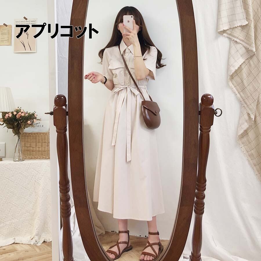 ワンピース レディース 送料無料 2色 フレアワンピース フレア シャツワンピース ロング丈 ロングワンピース ミモレ丈 ミモレワンピース ホワイト 襟付き 半袖 前開き ファスナー ハイウエスト ウエストマーク ベルト 体型カバー 脚長 細見え スタイルアップ 着痩せ バイカラー 爽やか 清楚 涼し カジュアル ストリート 抜け感 きれいめ シンプル 上品 大人女子 おしゃれ お洒落 こなれ感 とろみ感 キュート モダン スタイリッシュ 春服 夏服 デート おでかけ 普段使い 着回し 10代 20代