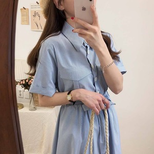 ダブルポケットが存在感大なカジュアルなシャツワンピース。