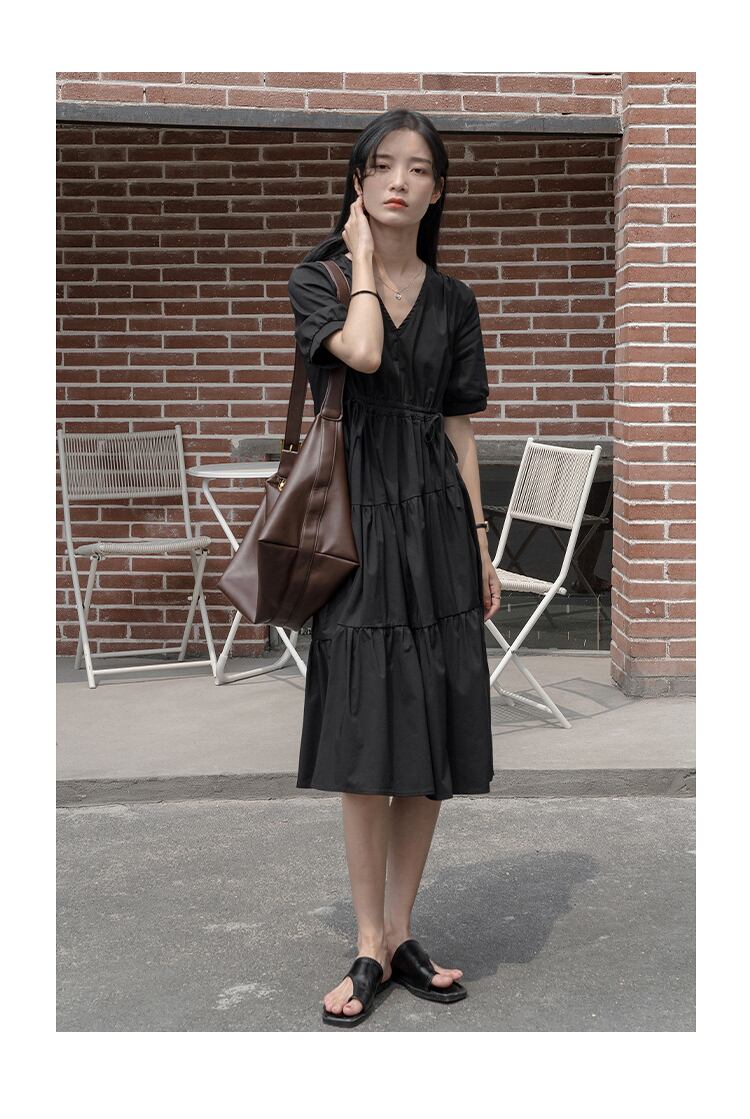 ワンピース レディース 送料無料 フレア ティアードワンピース Vネック カシュクール 半袖 ミモレ丈 リラックス ナチュラル ハイウエスト こなれ感 スタイル 小顔見せ 着痩せ 体形カバー インスタ トレンド きれいめ エレガント ルーズ カジュアル キュート フリル ギャザー シャーリング ゆったり フレア 大人かわいい 上品 無地 ブラック 黒 モノトーン ゆる ドレープ ふんわり ボリューム ティアード デート お出かけ 大きいサイズ プラスサイズ