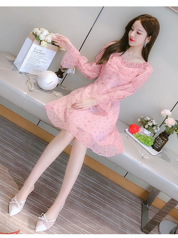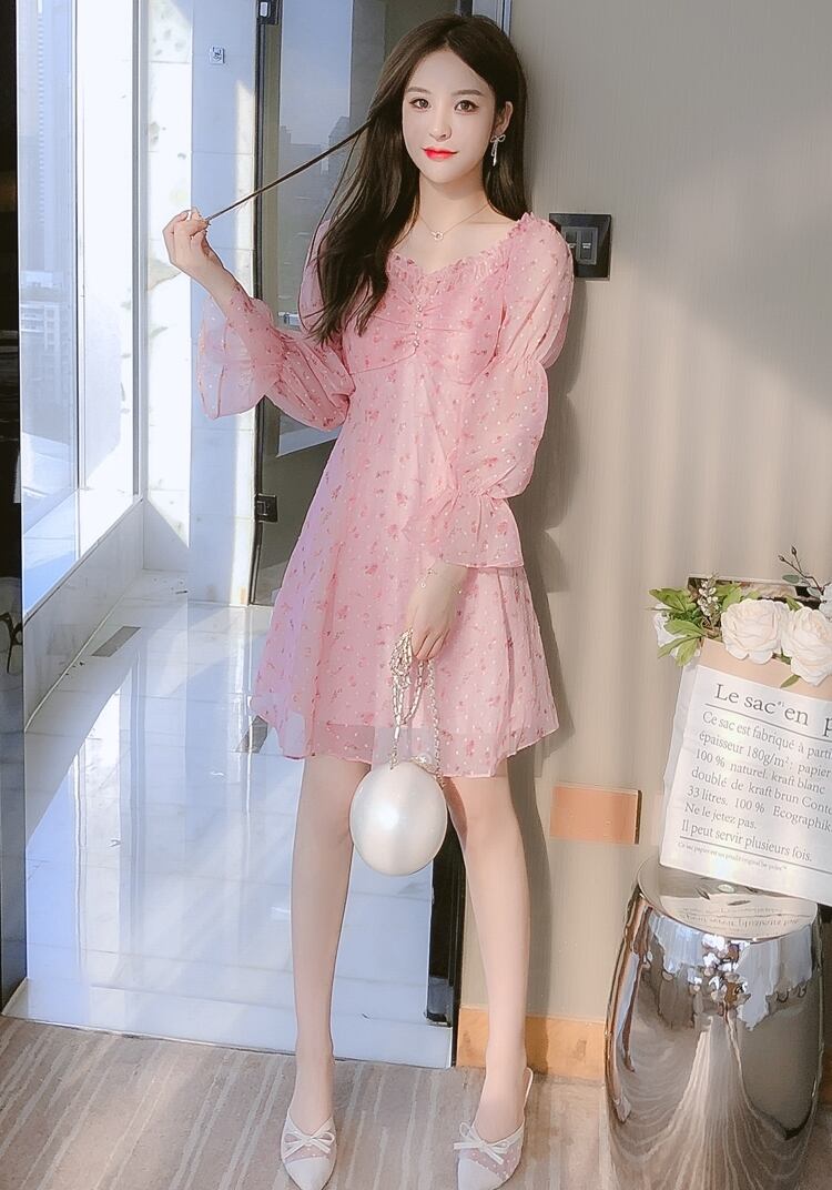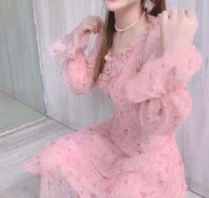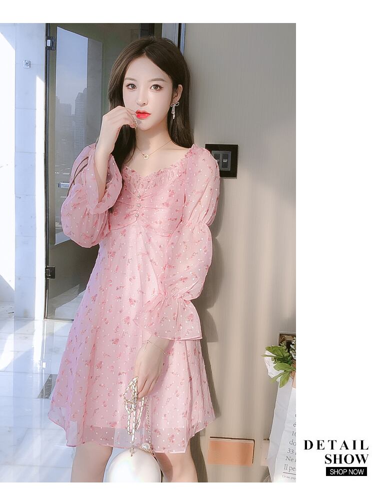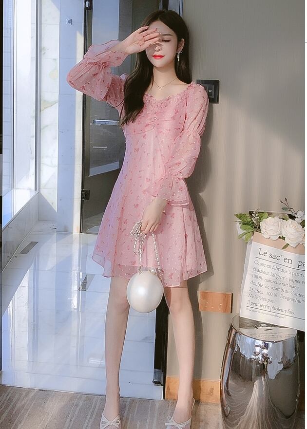 鮮やかな花柄シフォン生地のボリューム感が可愛いミディ丈ワンピース。