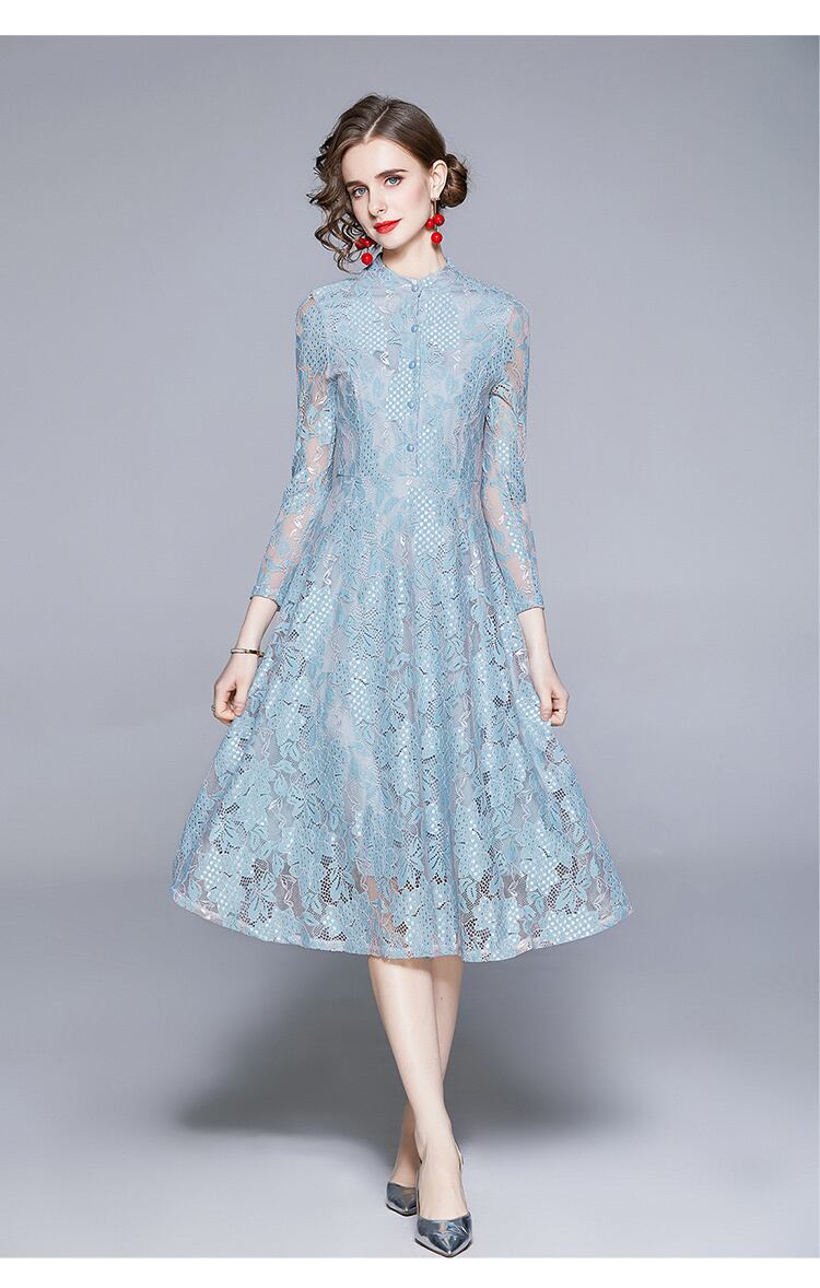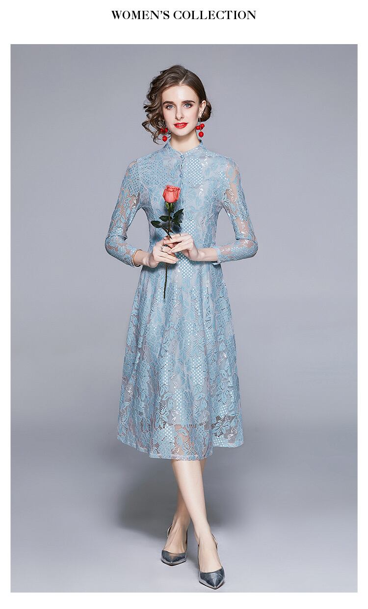 ワンピース レディース 送料無料 2色展開 フレアワンピース フレア ロングワンピース ロング丈 ミモレ丈 ミモレワンピース パーティードレス 総レース 刺繍 花柄 フラワー クルーネック 立ち襟 スタンドカラー 長袖 ロングスリーブ 前開き フロントボタン フィットアンドフレア Aライン 透け感 シースルー ゴージャス リュクス 華やか フェミニン スタイリッシュ 上品 エレガント おしゃれ お洒落 エキゾチック カッコイイ かっこいい 大人女子 抜け感 モダン 春服 秋服 披露宴 結婚式 謝恩会 新作