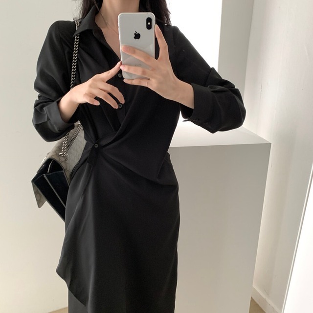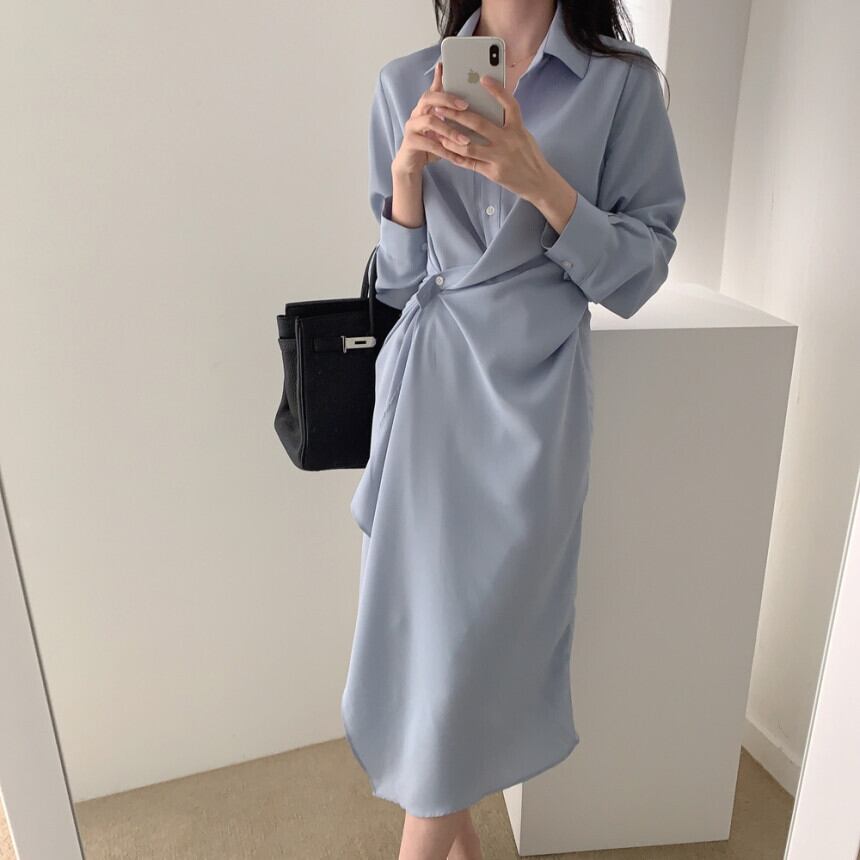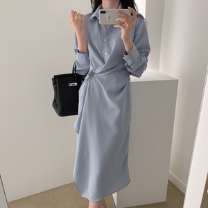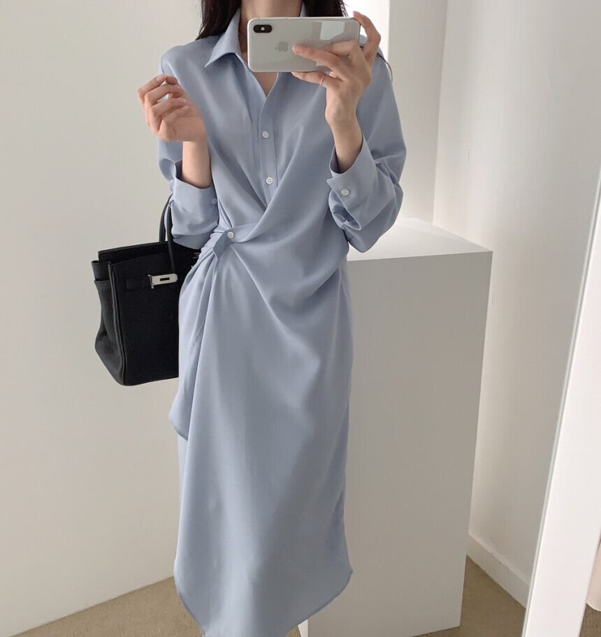 ウエストひねりデザインがフェミニンなシャツワンピース。