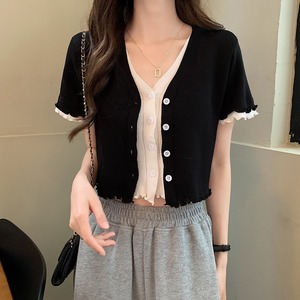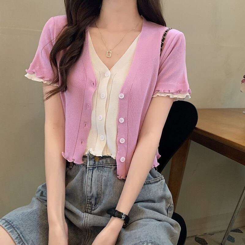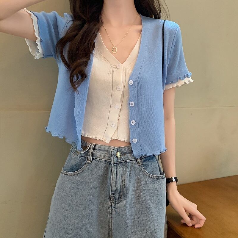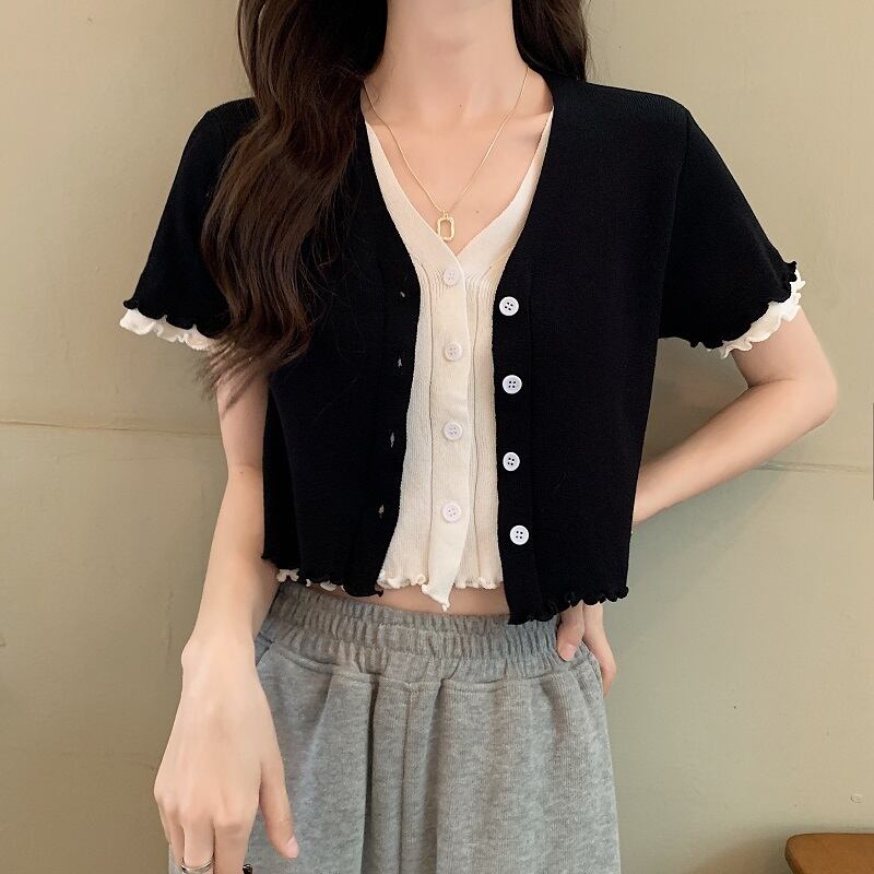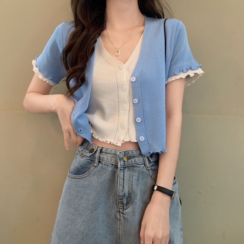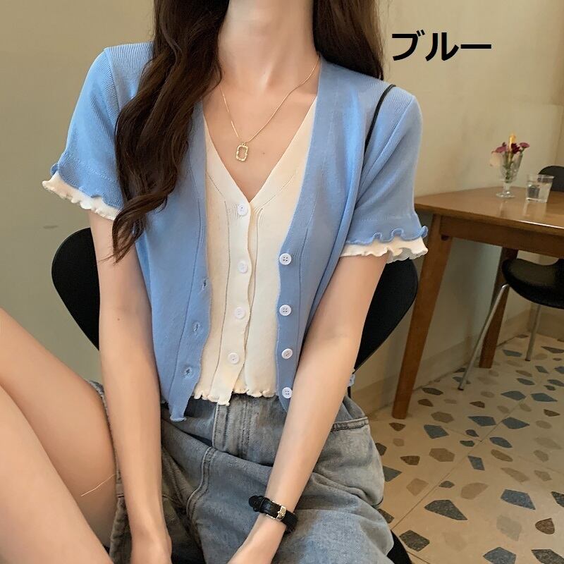 トップス レディース 重ね着風カーディガン 送料無料 カラバリ ブラック ブルー ピンク 3色 サイズ4展開 XL 2XL 3XL 4XL 大きいサイズ 夏 重ね着 着回し フロントボタン カーディガン ショート丈 おしゃれ きれいめ 通勤 お出かけ 通学 学生 休日 ランチ 公園デビュー 10代 20代 30代 スタイル カジュアル 無地 半袖 半袖カーディガン ユニーク 配色 バイカラー 韓国 韓国ファッション オルチャン