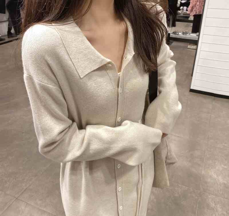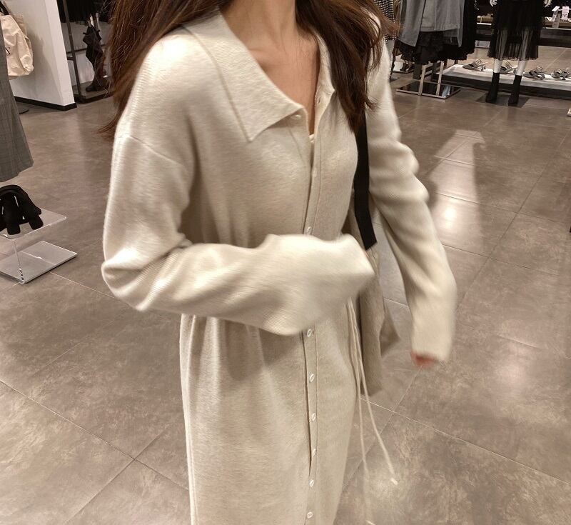 ゆったりラフなシルエットが可愛いシャツニットワンピースです。