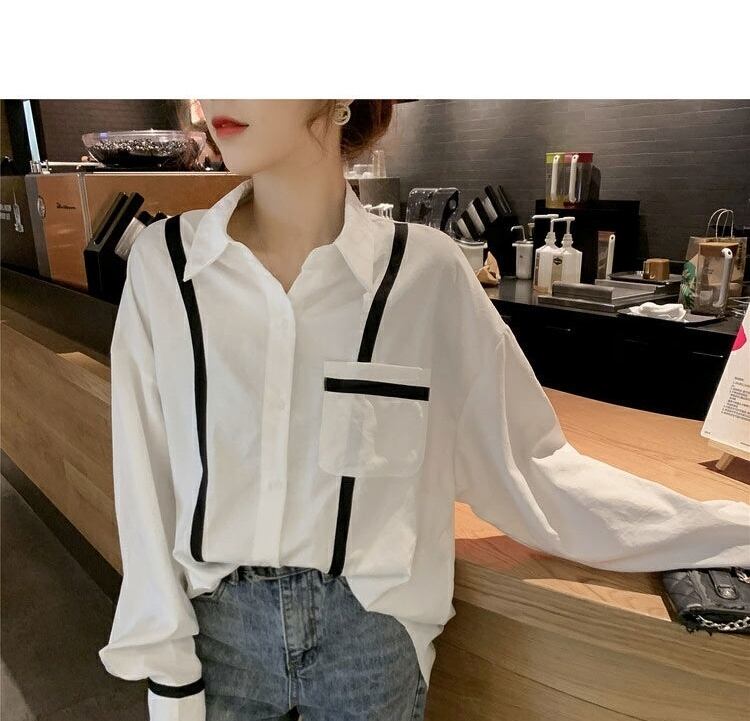 トップス レディース 送料無料 長袖ゆったりシャツ カラバリ 3色 ホワイト ブラック レッド サイズ3展開 S M L バイカラー 配色 長袖 ゆったり 楽ちん ライン入り 胸ポケット 長袖シャツ 無地シャツ バイカラーシャツ 20代 30代 40代 おしゃれ きれいめ 通勤 お出かけ 休日 デート ランチ 女子会 春 秋 冬 韓国 韓国ファッション オルチャン