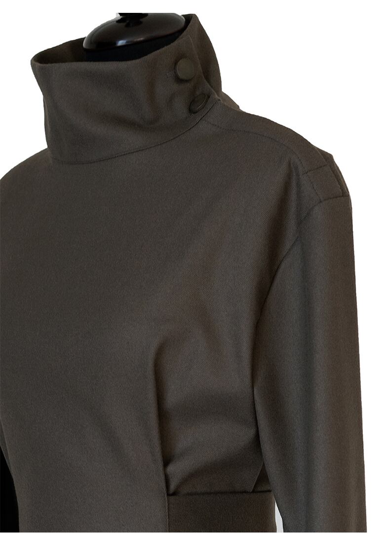 スタンドカラーとタイトめなシルエットが大人っぽい。