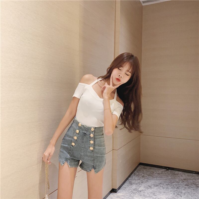 ダメージ ショートパンツ 送料無料 ショート丈 春夏コーデ ボトムス ハイライズ ハイウエスト ミニ ミニ丈 デニム ブルーデニム ダブルボタン メタルボタン クール シンプル スリット 春 夏 無地 黒 ブラック カジュアル 大人 おしゃれ お洒落 こなれ感 ラフ メンズライク ボーイッシュ スポーティー 30代 10代 20代 お出かけ 休日 アウトドア リゾート 旅行 海 プール トレンド 流行